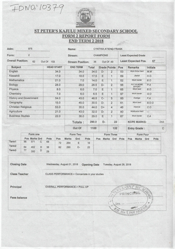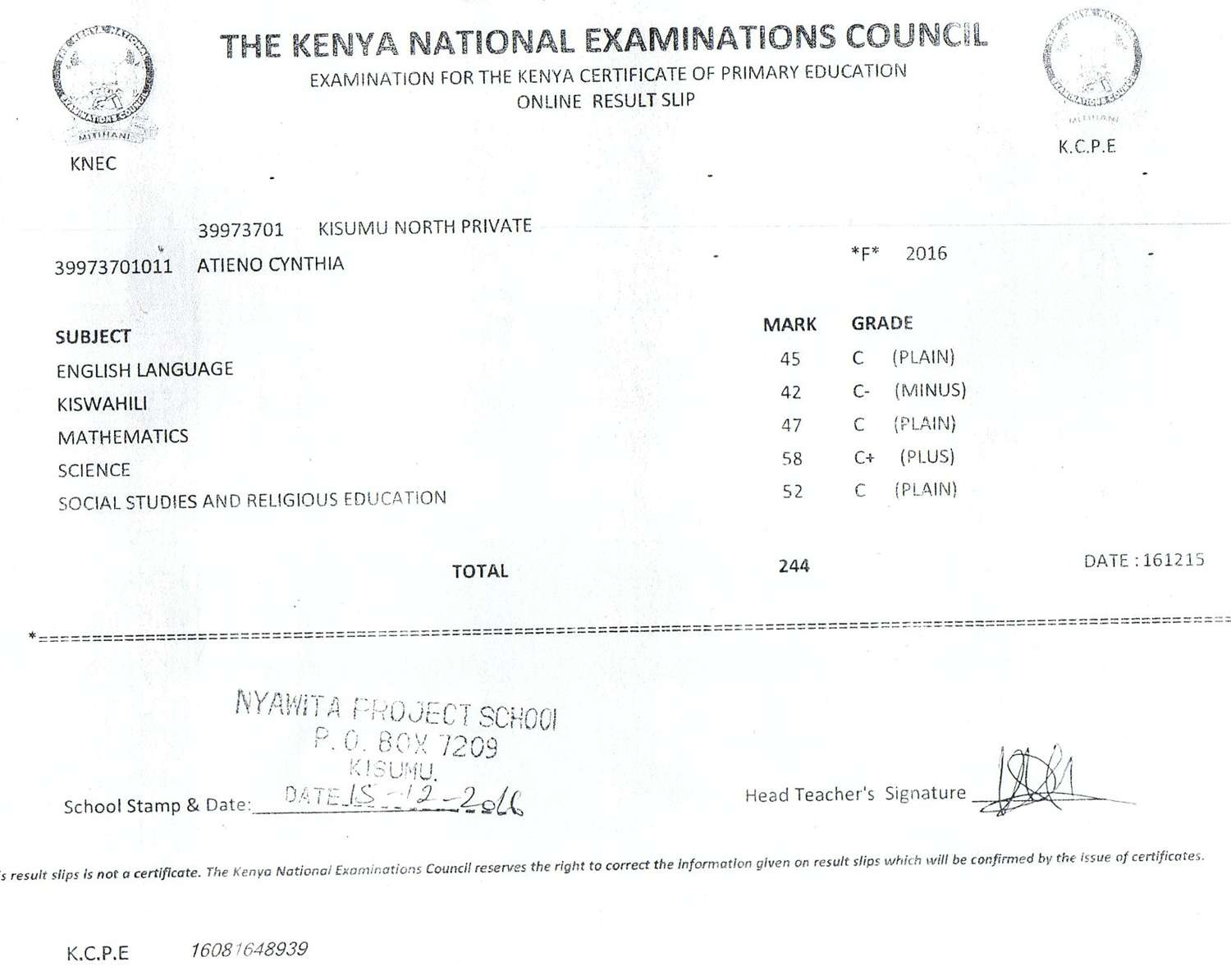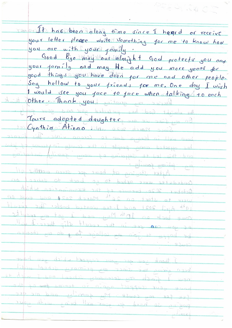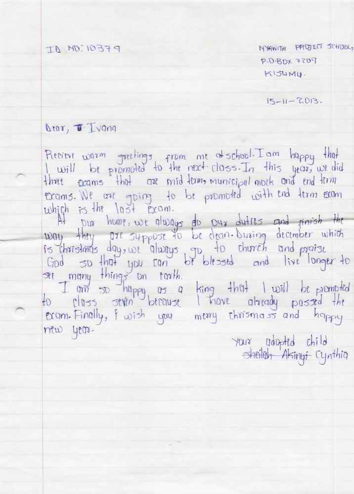 Aby mohlo adoptované dítko začít chodit do školy, musí být uhrazeny peníze za školné alespoň měsíc předem. Tím máme dostatek času převést peníze do Keni a vypsat šek na jméno školy a zaručit jeho doručení do školy - to vše před započetím trimestru. Konkrétně to tedy znamená, že vždy do konce března, července a listopadu musí být na našem účtu 2400 Kč na uhrazení školného na nově začínající trimestr. Adoptivní rodič může platit třikrát ročně nebo jednorázově na celý rok a záleží to čistě na jeho rozhodnutí a možnostech.