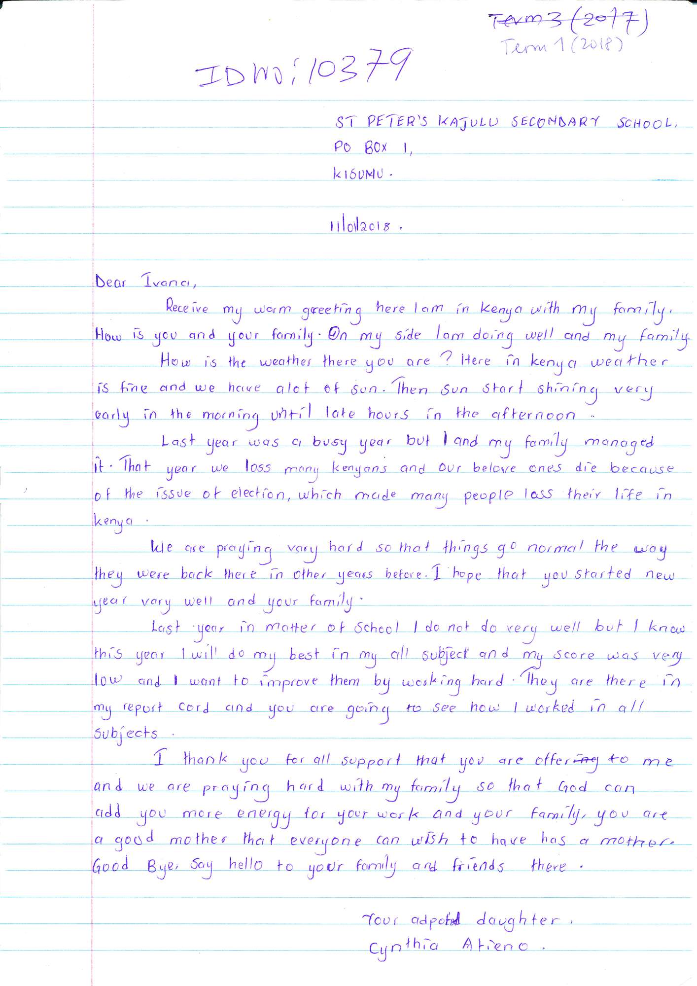 Adopce dětí z Keni přijde na 7200 Kč ročně, což odpovídá 600 Kč měsíčně. Školní rok v Keni je rozdělen na tři trimestry, mezi nimiž je vždy jeden měsíc prázdnin. První trimestr začíná v lednu, druhý v květnu a třetí v září.