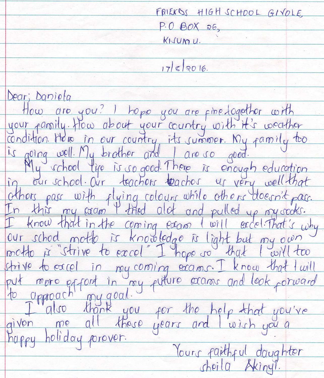Popis situace: Sheila má ještě sourozence. Matka je samoživitelka a příjem není velký. Nemůže si dovolit zaplatit vzdělání a ostatní potřeby. Díky podpoře adoptivního rodiče může Sheila chodit do školy.