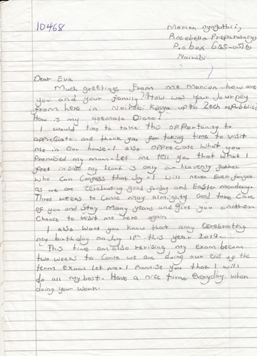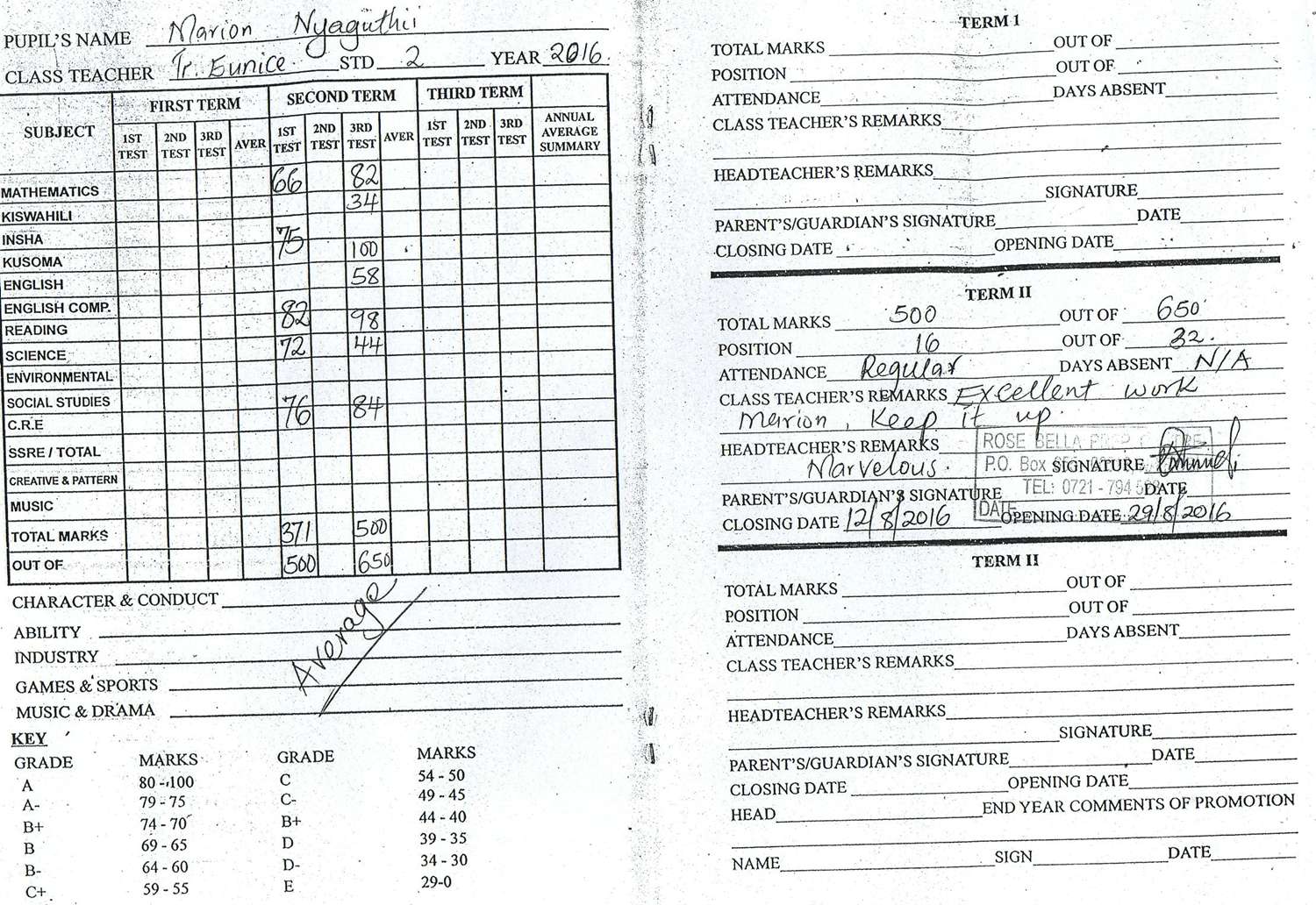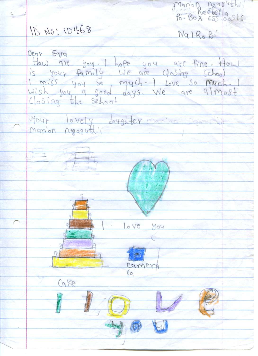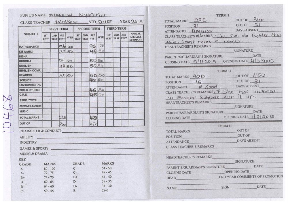 Marion Nyaguthi Githui byla adoptována v roce 2016 a dnes navštěvuje 6. třídu ve škole Rosebella Preparatory Academy.