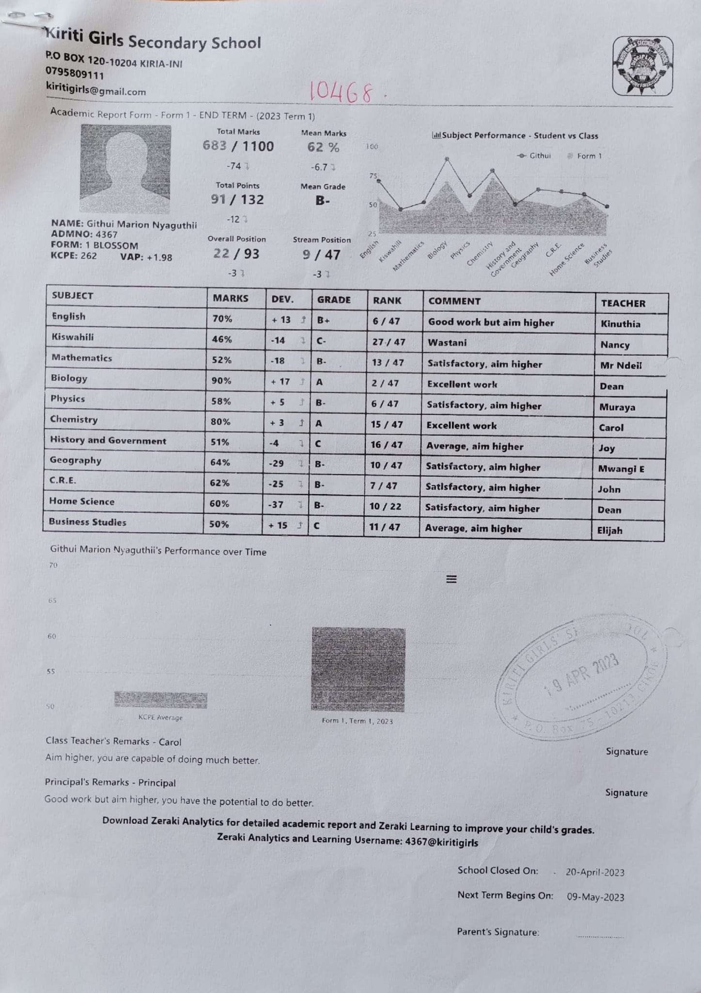 Adopce dětí z Keni přijde na 7200 Kč ročně, což odpovídá 600 Kč měsíčně. Školní rok v Keni je rozdělen na tři trimestry, mezi nimiž je vždy jeden měsíc prázdnin. První trimestr začíná v lednu, druhý v květnu a třetí v září.