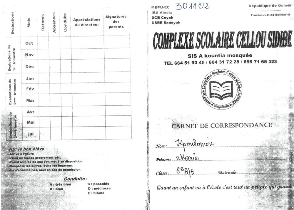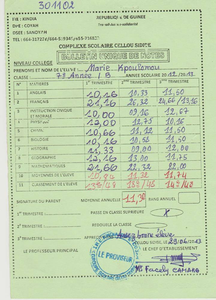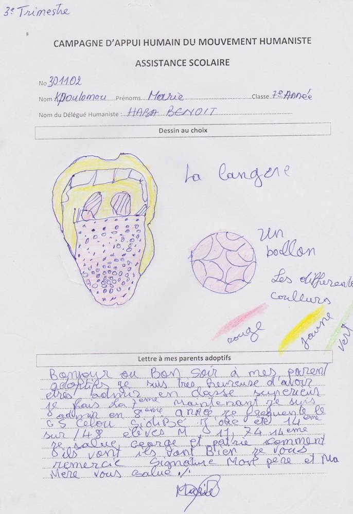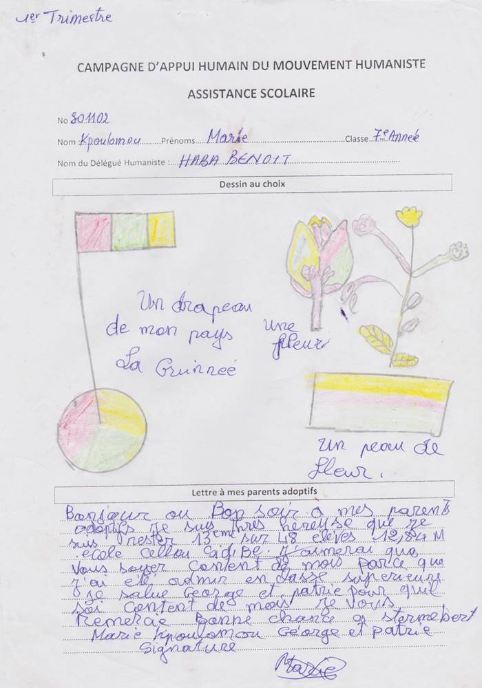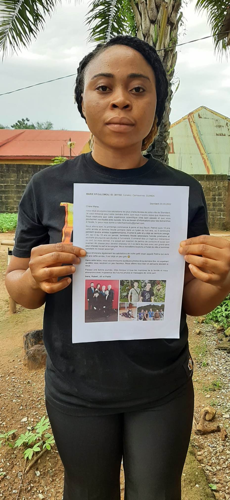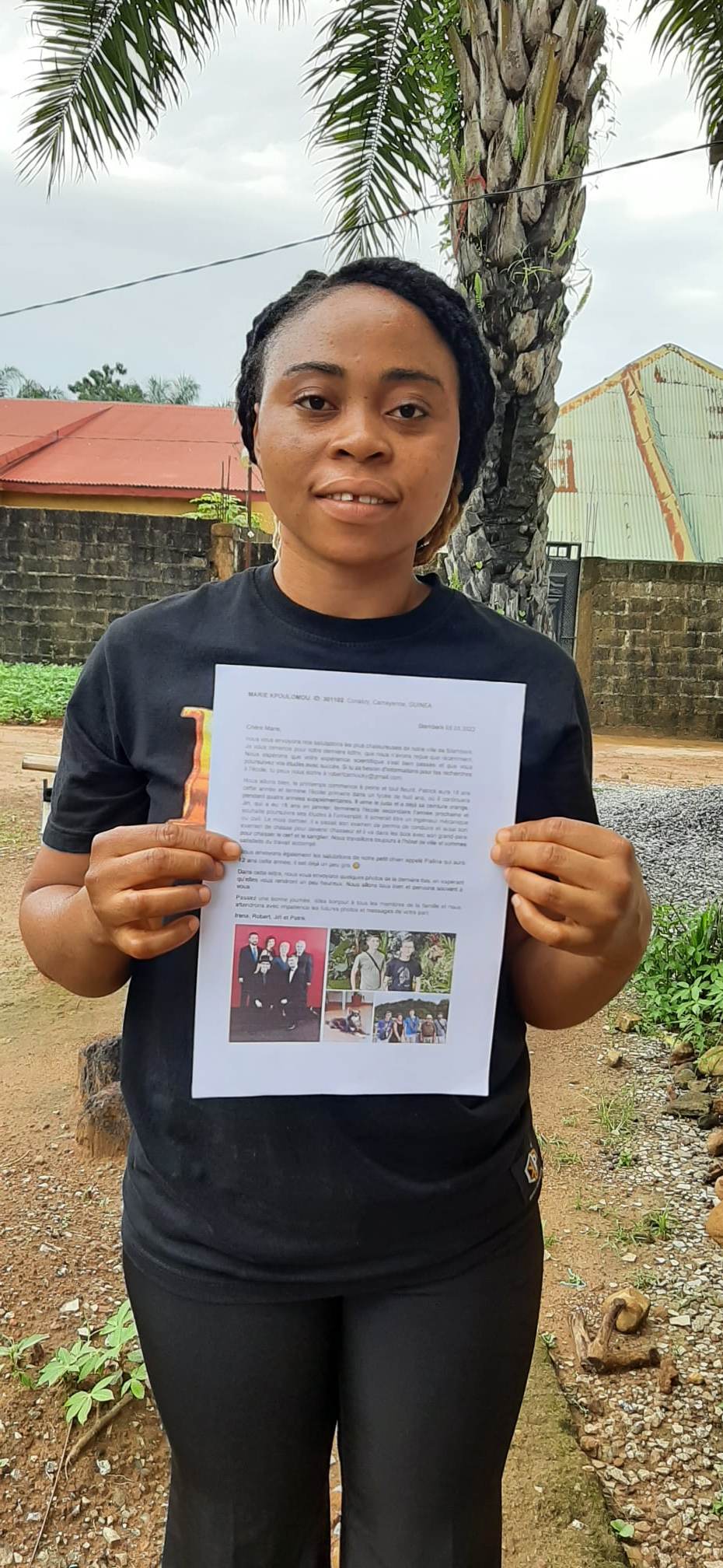 Marie Kpoulomou byla adoptována v roce 2010 a dnes navštěvuje 3. ročník střední školy ve škole Cellou Sidibé.