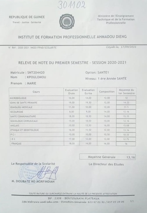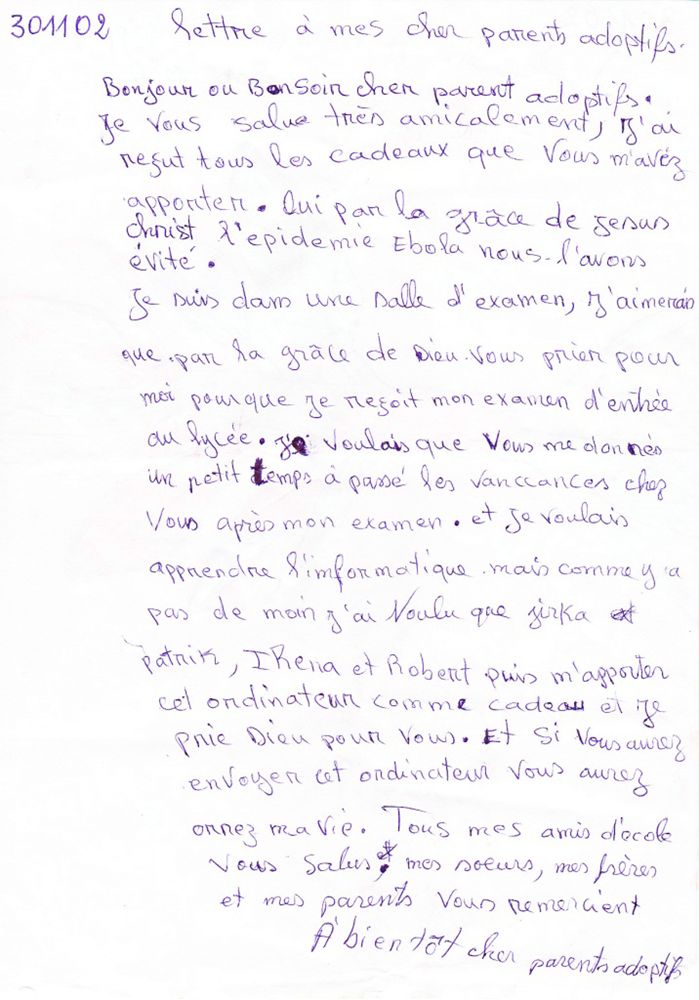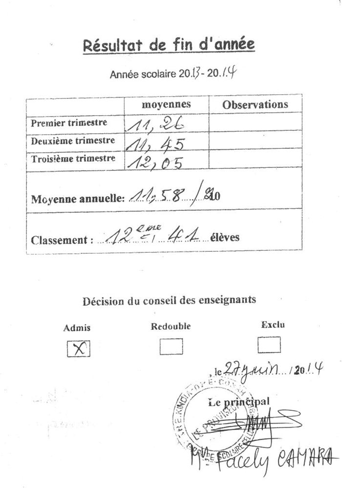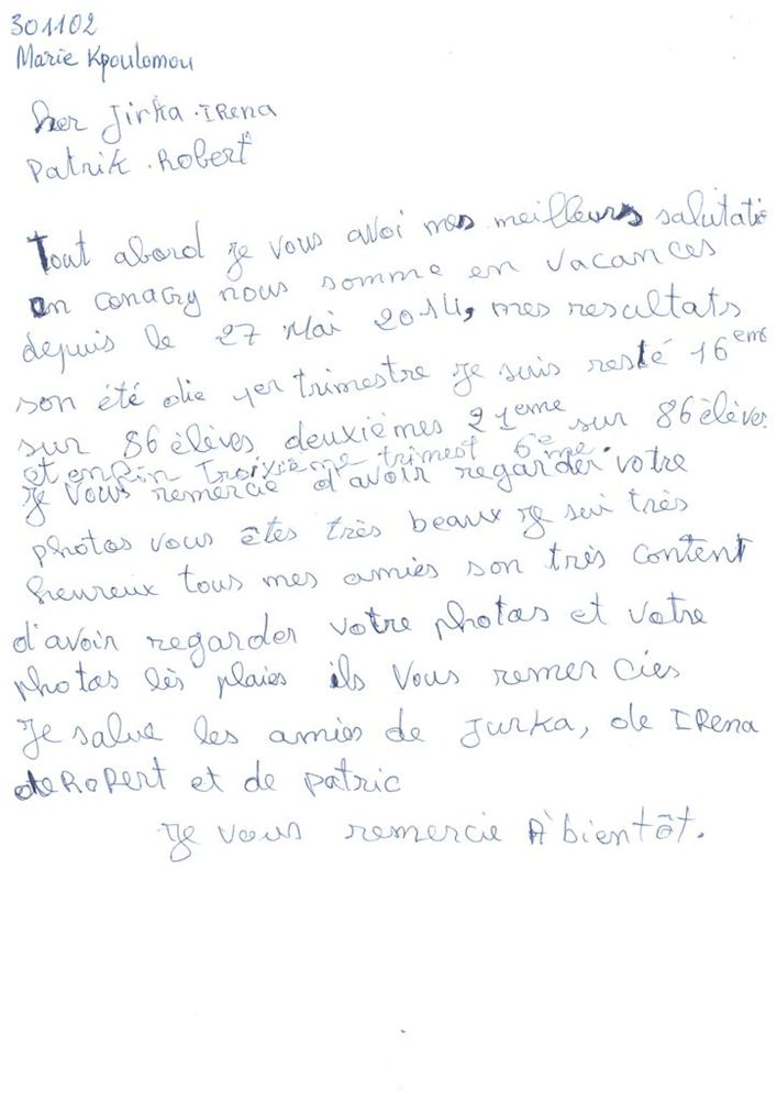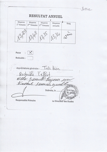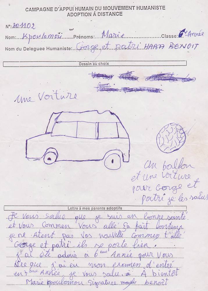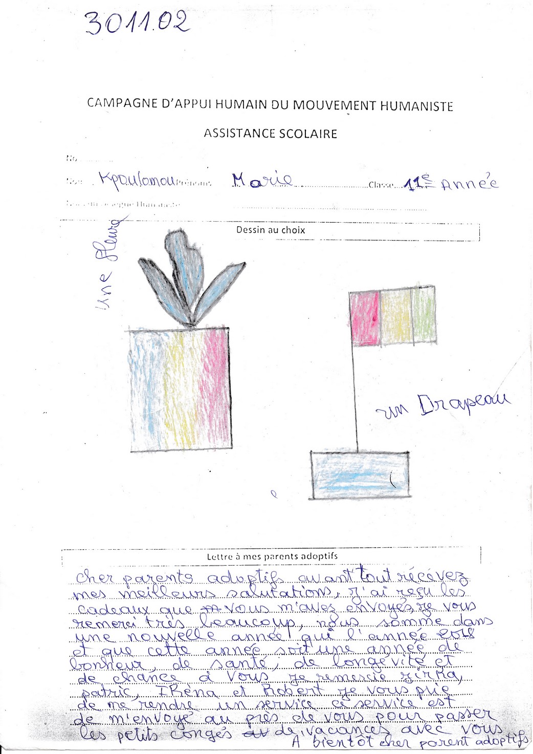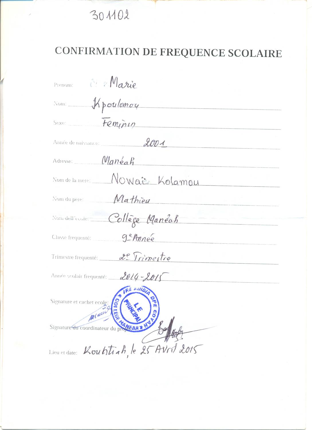 Marie Kpoulomou byla adoptována v roce 2010 a dnes navštěvuje 3. ročník střední školy ve škole Cellou Sidibé.