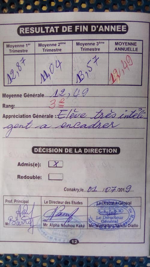Aby mohlo adoptované dítko začít chodit do školy, musí být uhrazeny peníze za školné alespoň měsíc předem. Tím máme dostatek času zajistit převod peněz do Guineje a vyřídit všechny formality. Konkrétně to tedy znamená, že vždy do konce srpna, listopadu a února musí být na našem účtu 2500 Kč na uhrazení školného na nově začínající trimestr. Adoptivní rodič může platit třikrát ročně nebo jednorázově na celý rok a záleží to čistě na jeho rozhodnutí a možnostech.