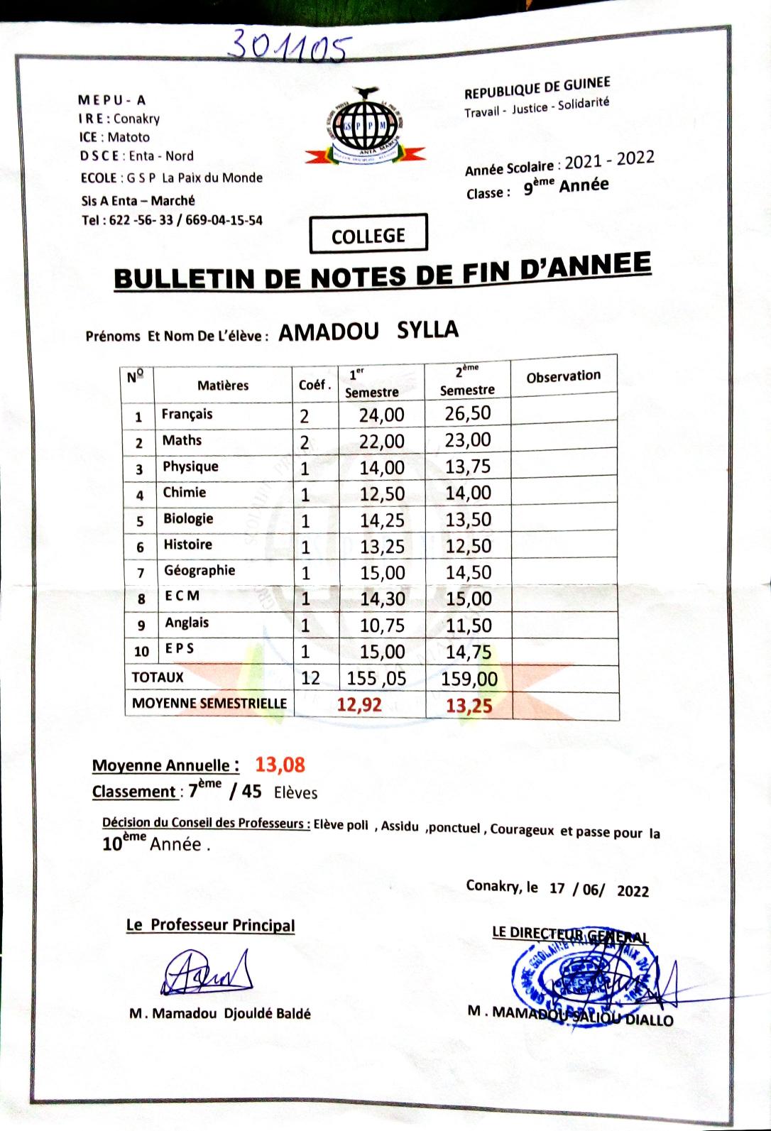 Otec: Lansana Sylla, nar. 1979, student