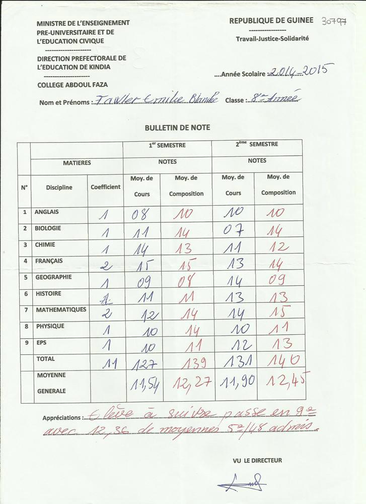 Emilie Blanche Faoler byla adoptována v roce 2004 a dnes navštěvuje 1. ročník vysoké školy ve škole Aly Kaba.