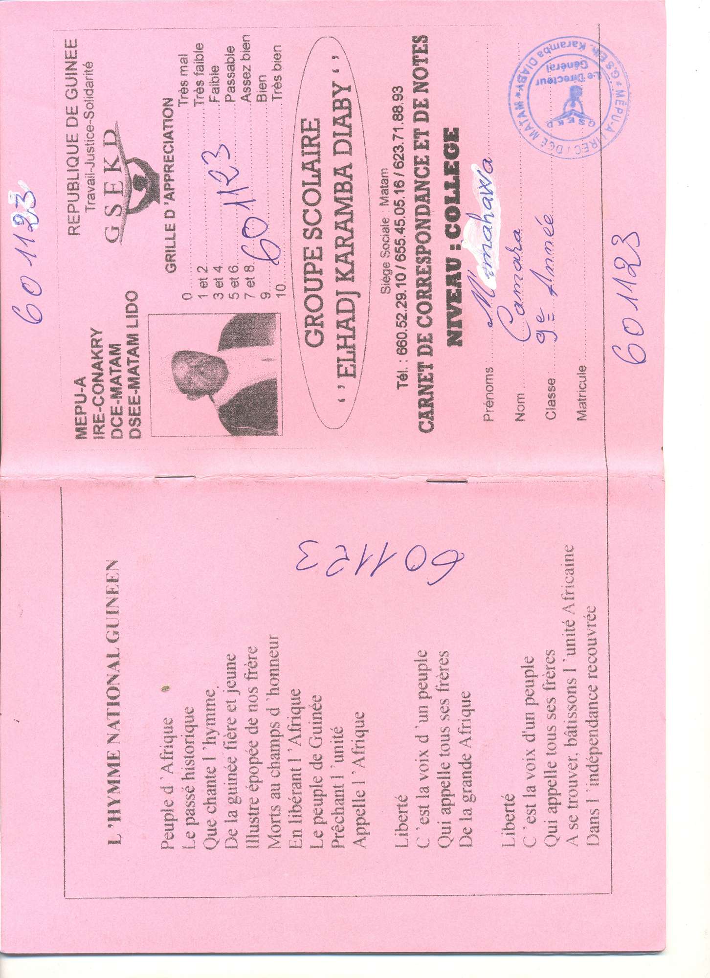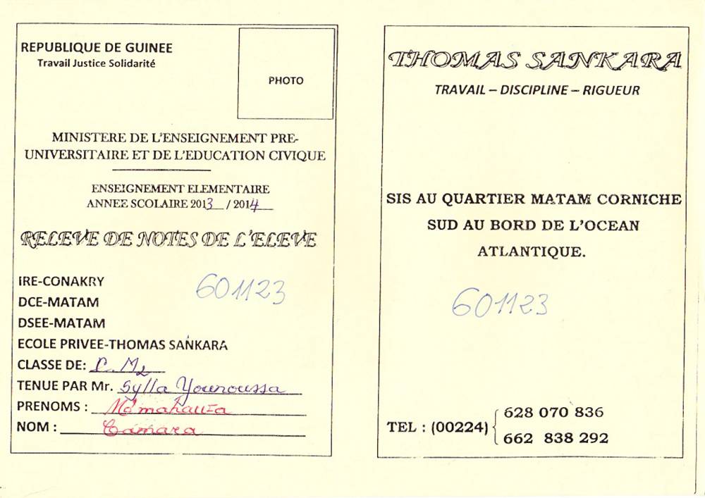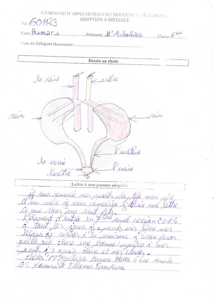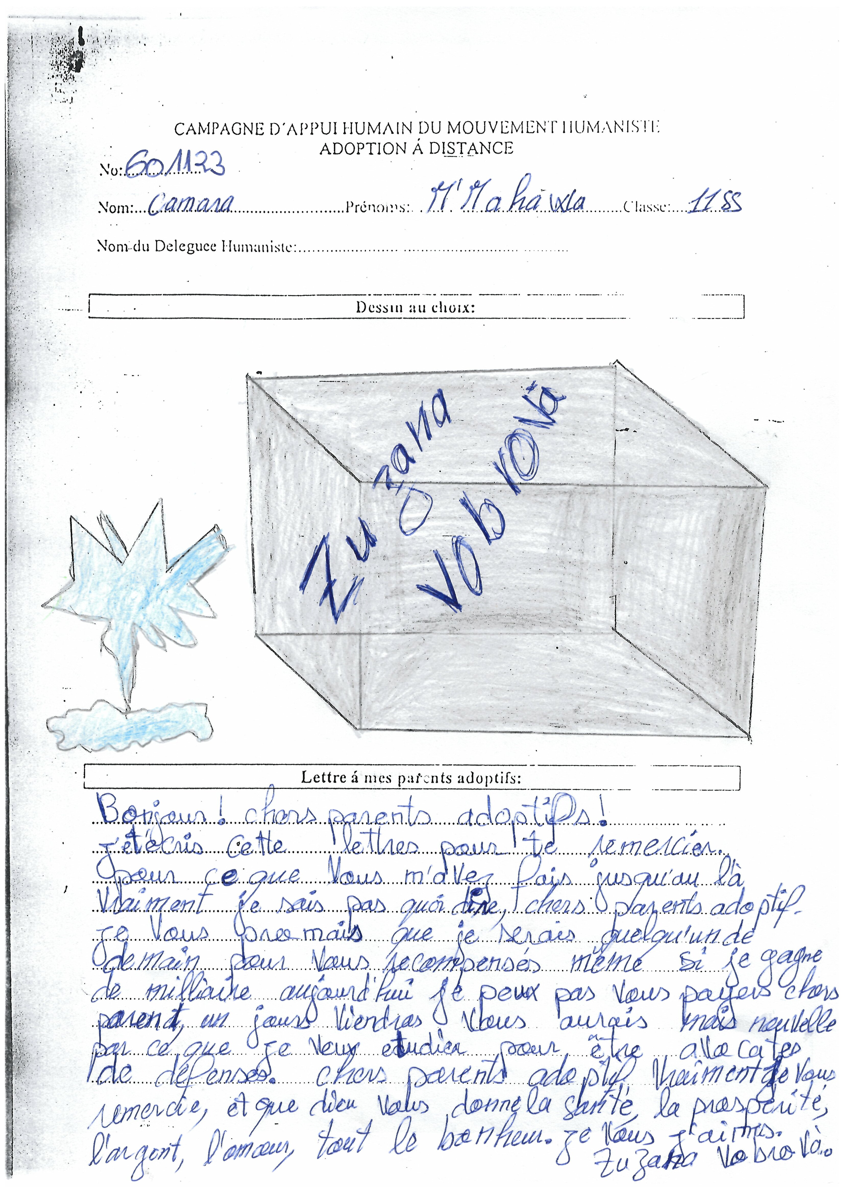 Mahawa Camara byla adoptována v roce 2007 a dnes navštěvuje 1. ročník střední školy ve škole G.S.P. Elhadj Karamba Diaby (Matam).