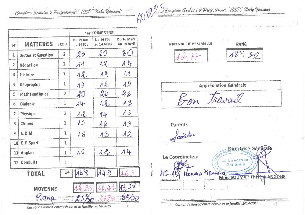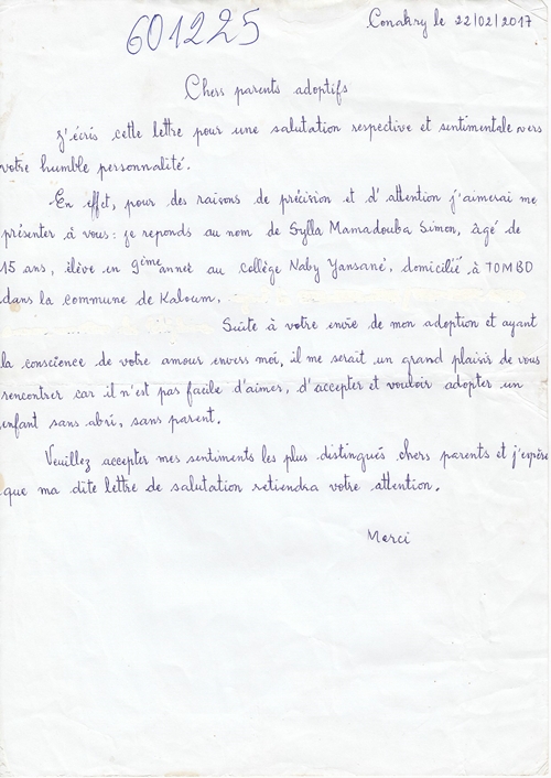 Simon Sylla byl adoptován v roce 2008 a dnes navštěvuje 1. ročník střední školy ve škole G.S. Humaniste Kirikou (Kaporo Rail).