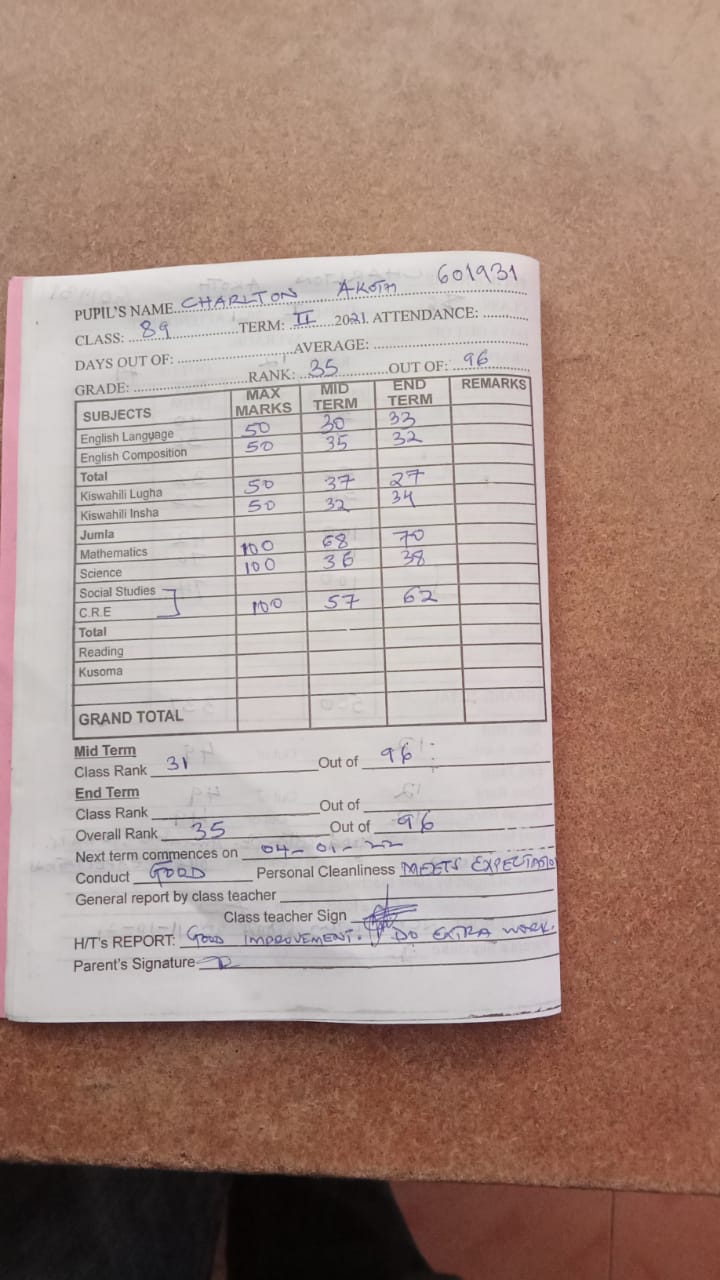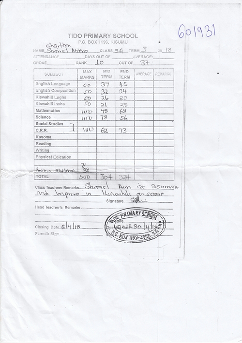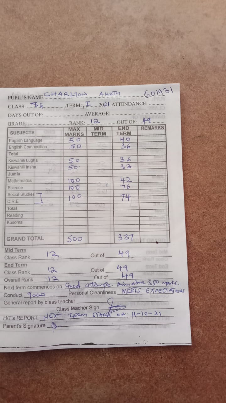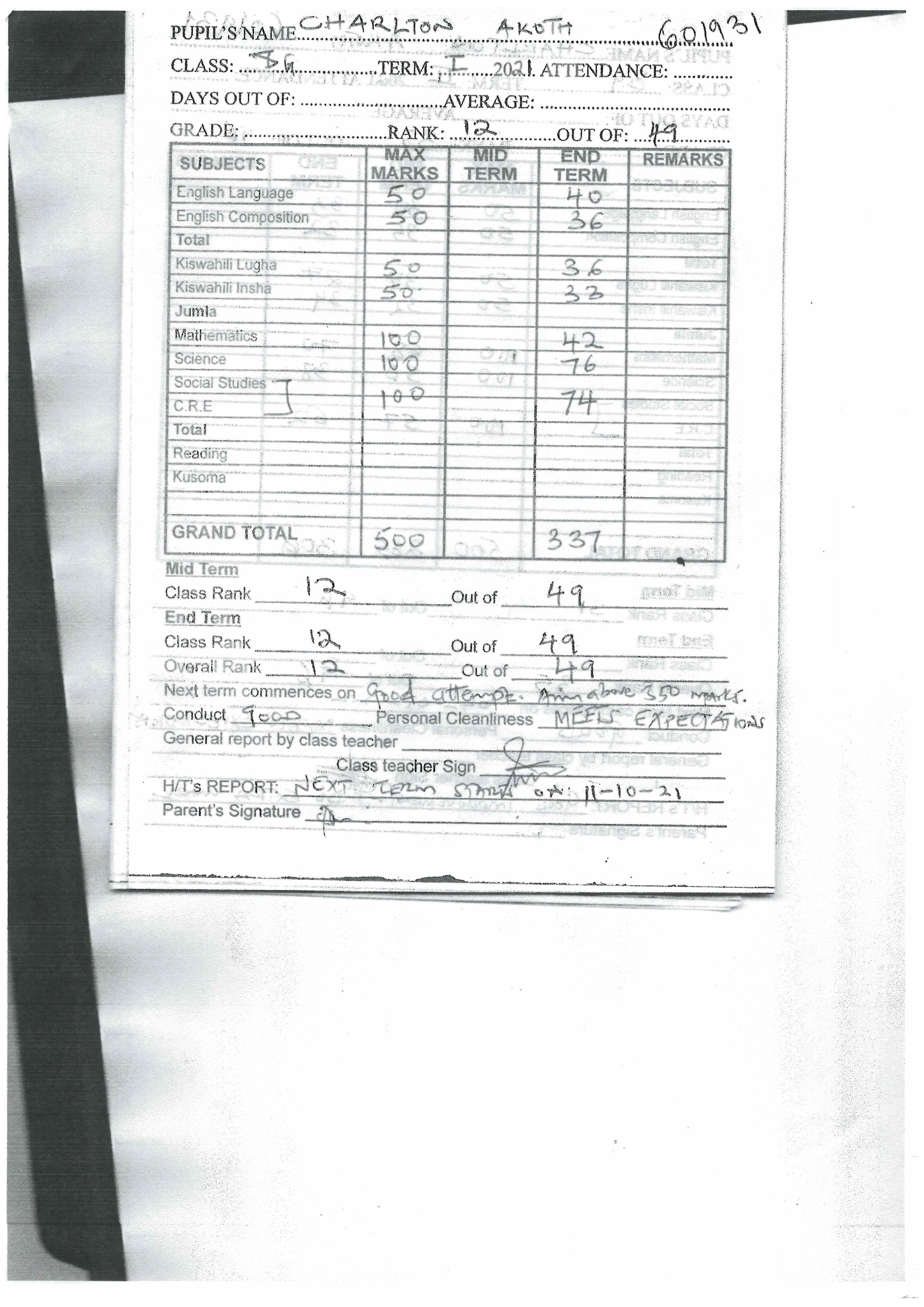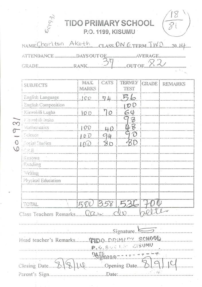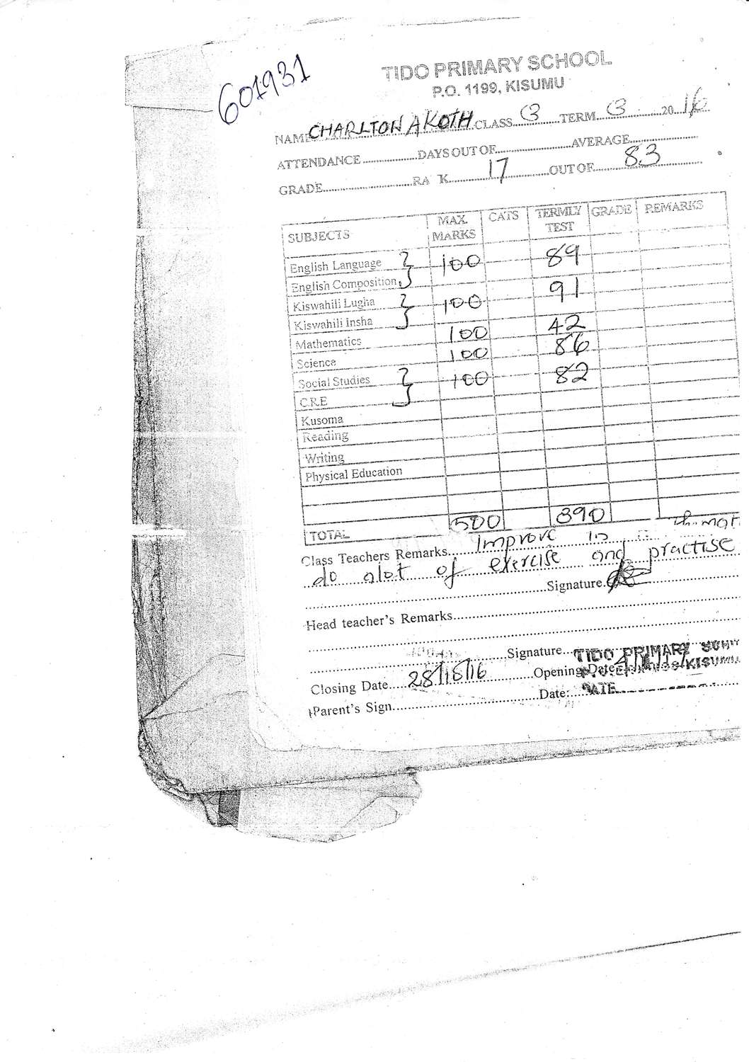 Charlton Akoth byla adoptována v roce 2008 a dnes navštěvuje 5. třídu ve škole Tido Primary School.