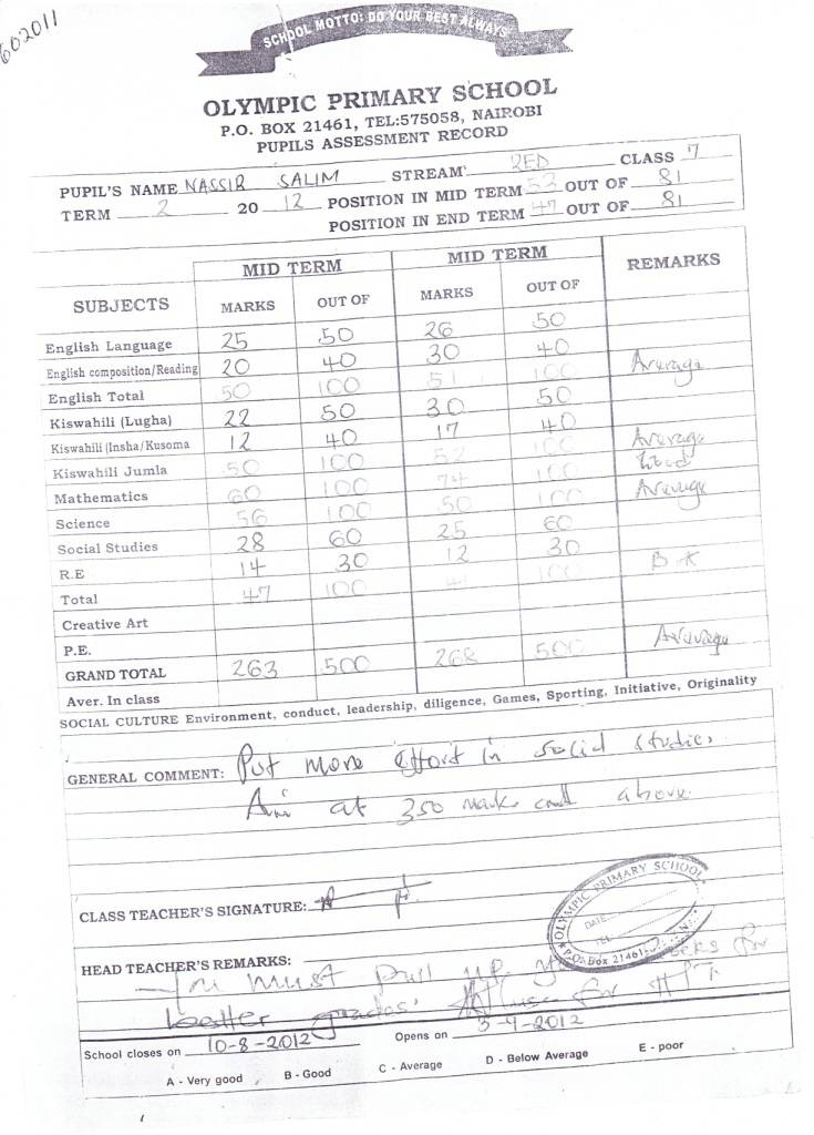 Aby mohlo adoptované dítko začít chodit do školy, musí být uhrazeny peníze za školné alespoň měsíc předem. Tím máme dostatek času převést peníze do Keni a vypsat šek na jméno školy a zaručit jeho doručení do školy - to vše před započetím trimestru. Konkrétně to tedy znamená, že vždy do konce března, července a listopadu musí být na našem účtu 2400 Kč na uhrazení školného na nově začínající trimestr. Adoptivní rodič může platit třikrát ročně nebo jednorázově na celý rok a záleží to čistě na jeho rozhodnutí a možnostech.