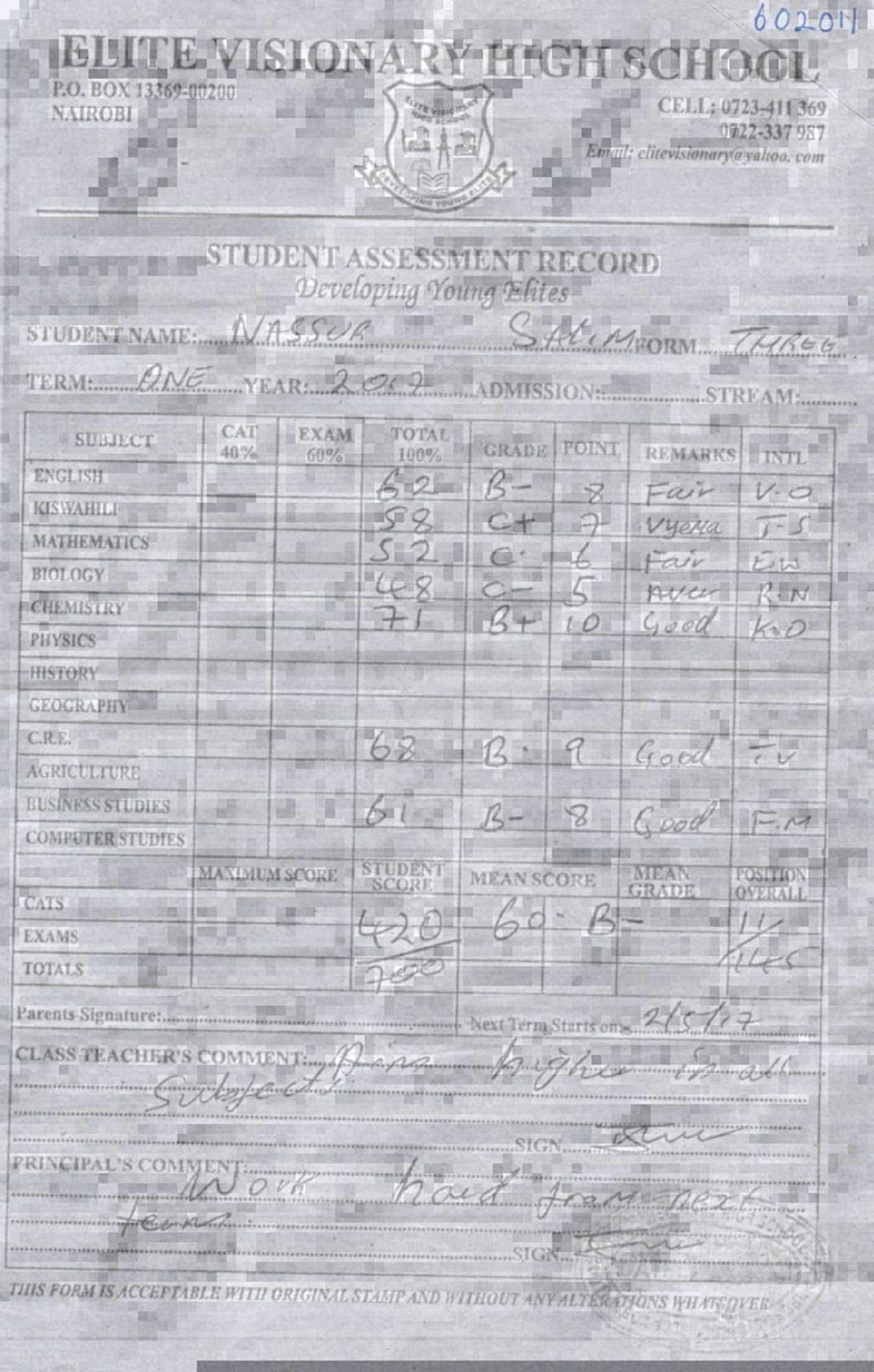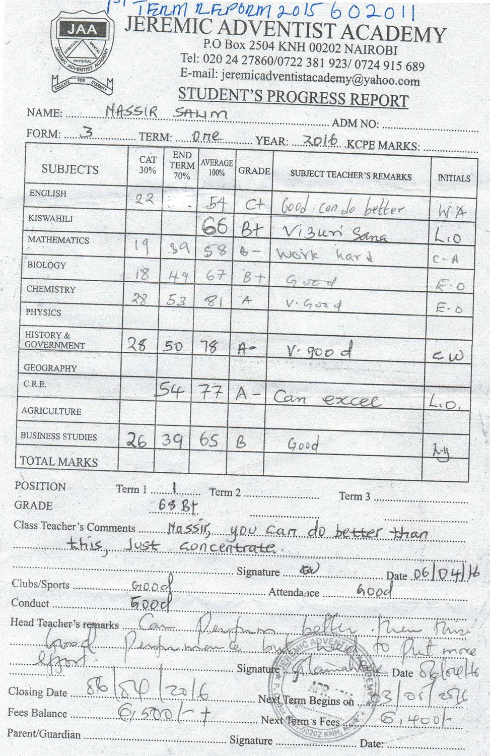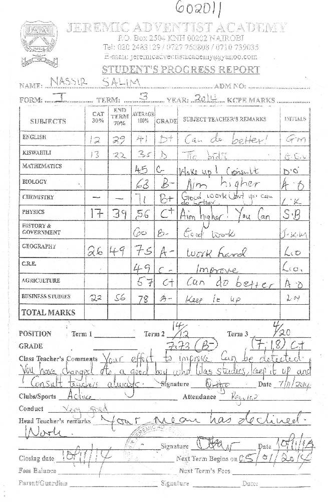 Salim Nasiri byl adoptován v roce 2009 a dnes navštěvuje 3. ročník střední školy ve škole Elite visionary high school.