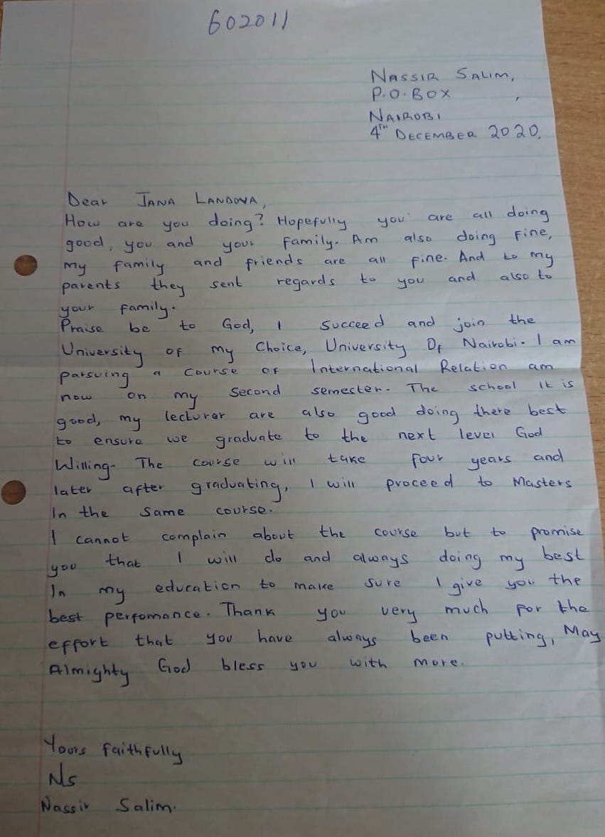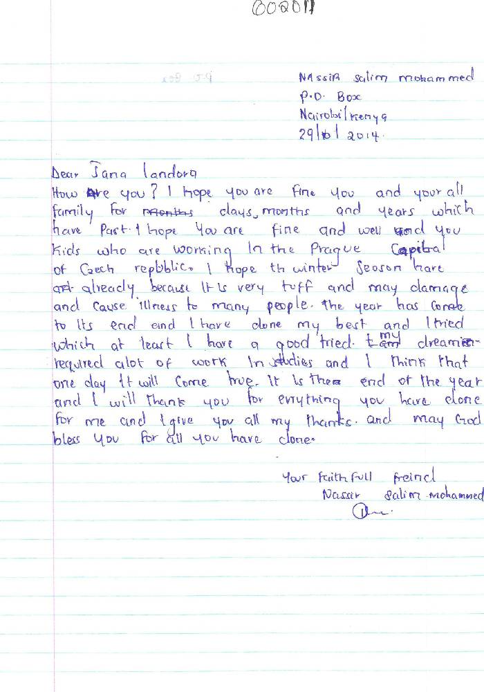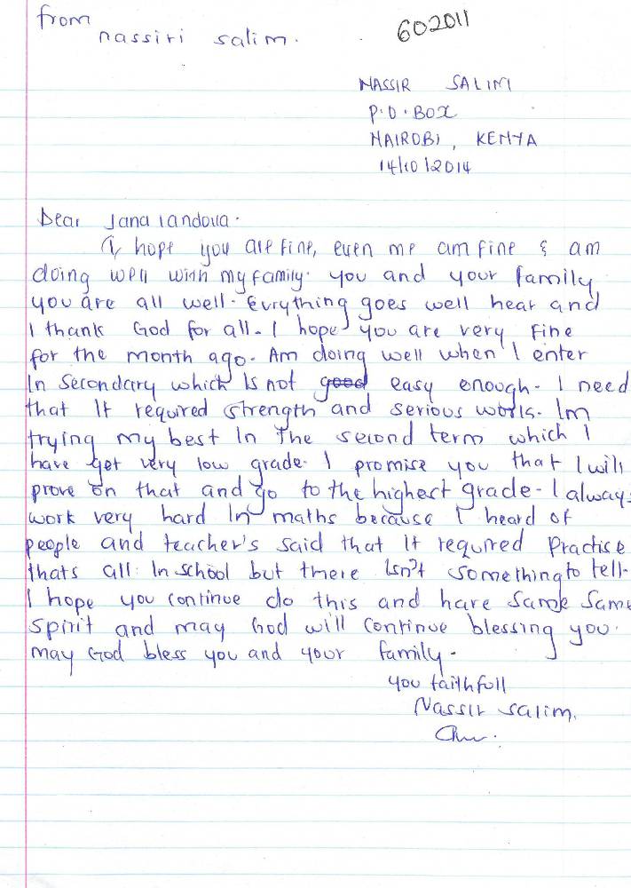 Adopce dětí z Keni přijde na 7200 Kč ročně, což odpovídá 600 Kč měsíčně. Školní rok v Keni je rozdělen na tři trimestry, mezi nimiž je vždy jeden měsíc prázdnin. První trimestr začíná v lednu, druhý v květnu a třetí v září.