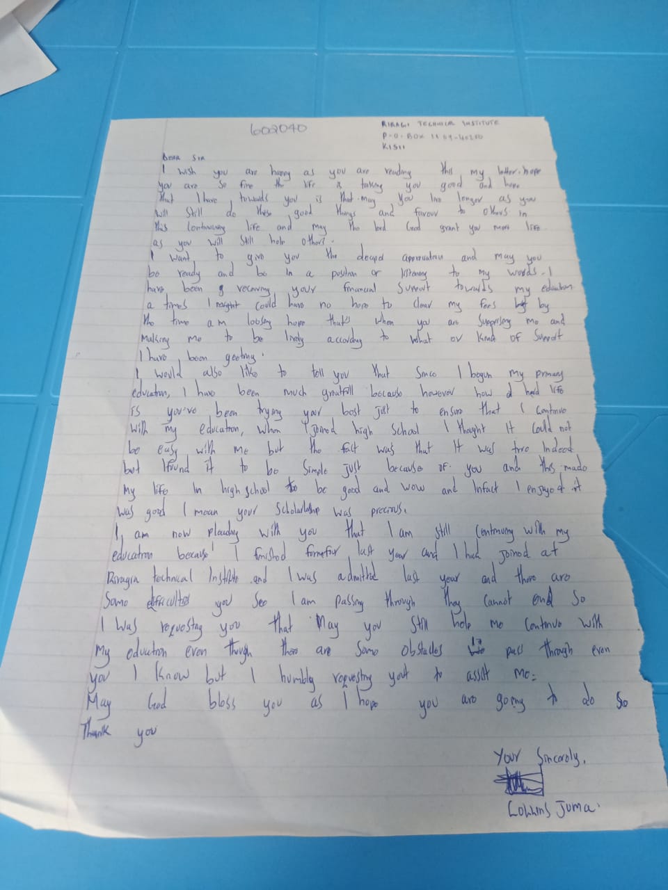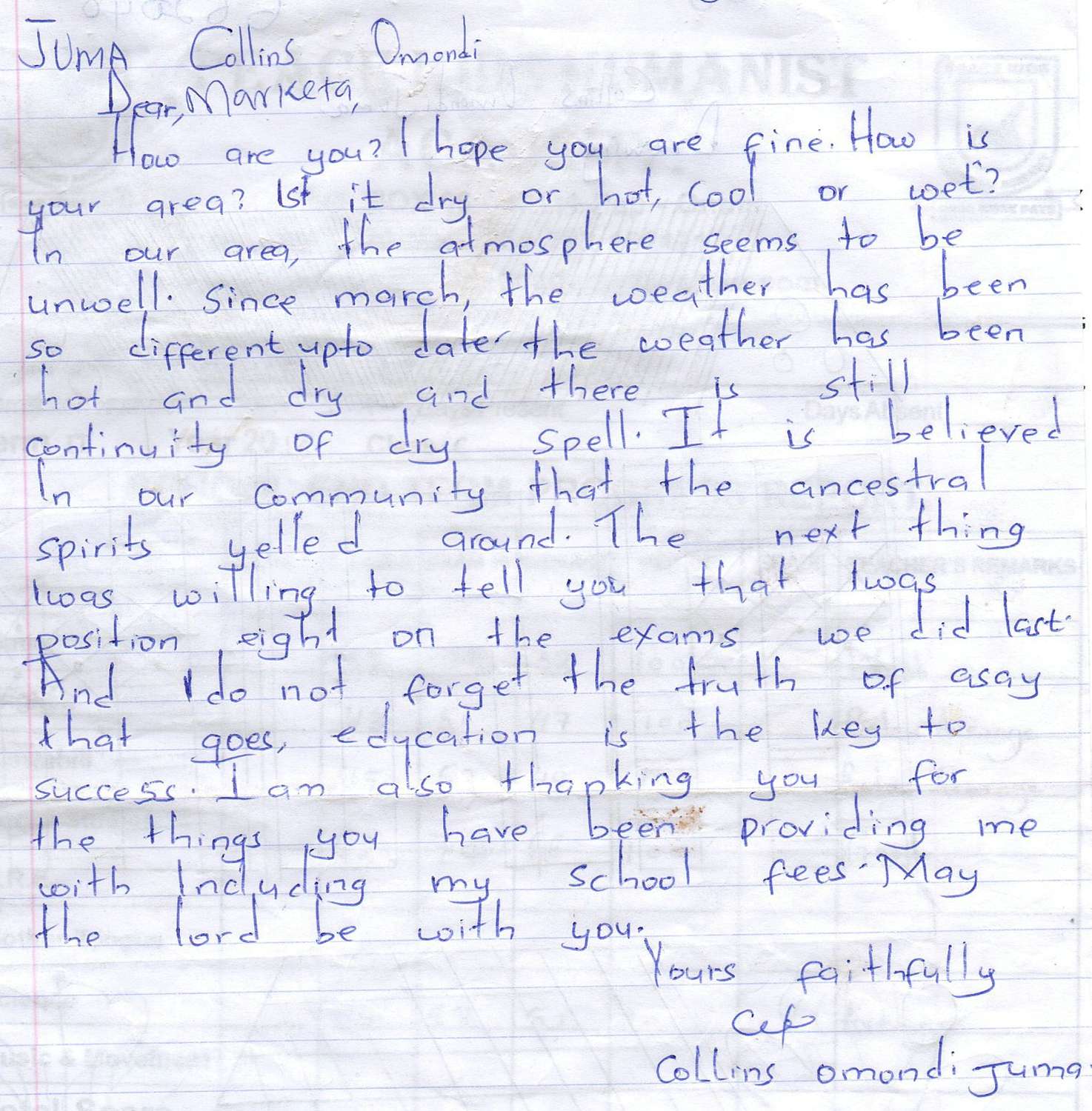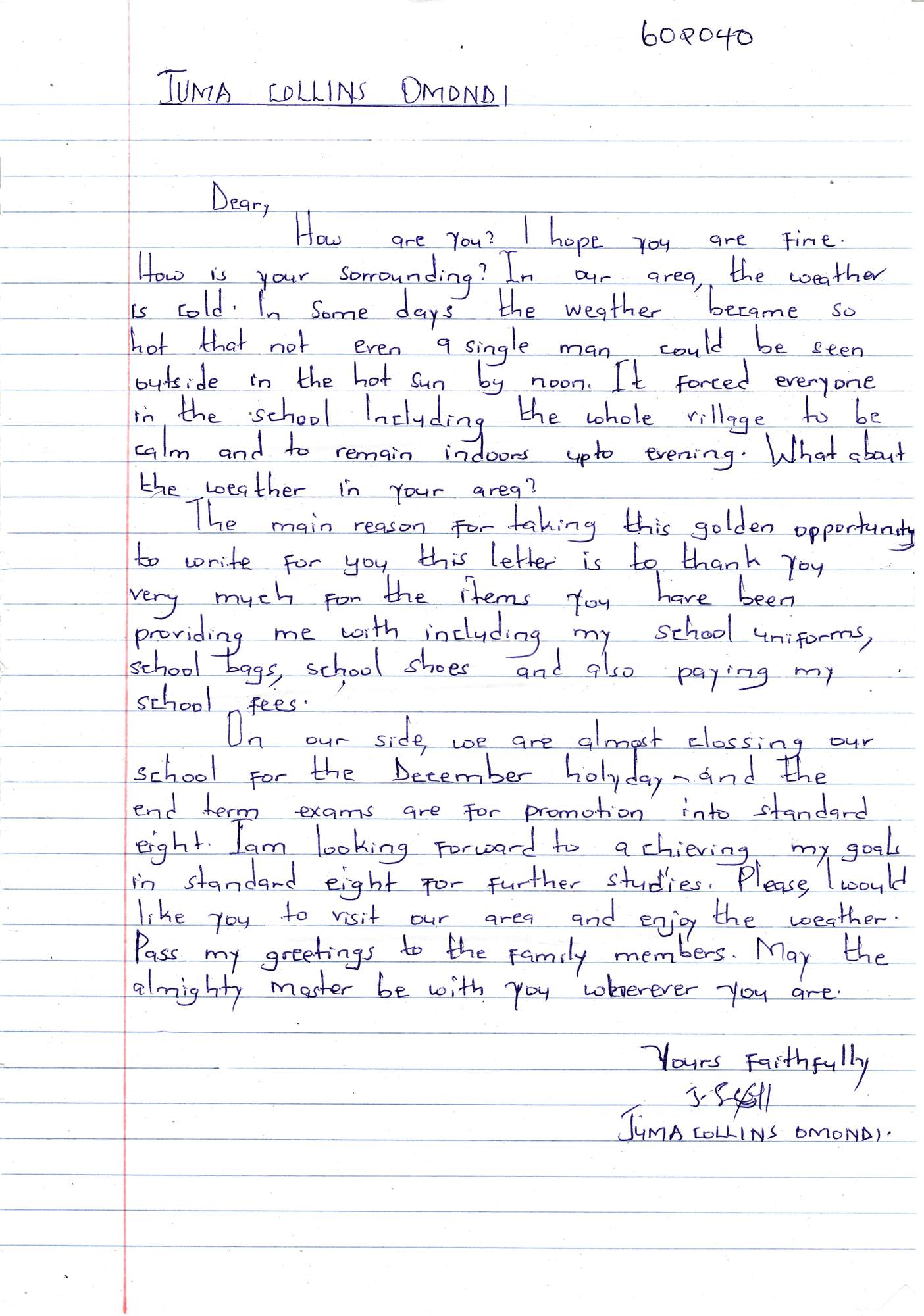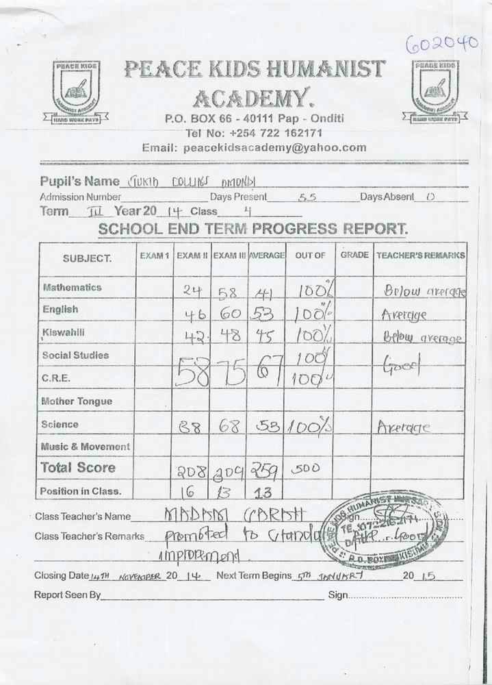 Collince Omondi Juma byl adoptován v roce 2009 a dnes navštěvuje 1. ročník střední školy ve škole Peace Kids Humanist School.