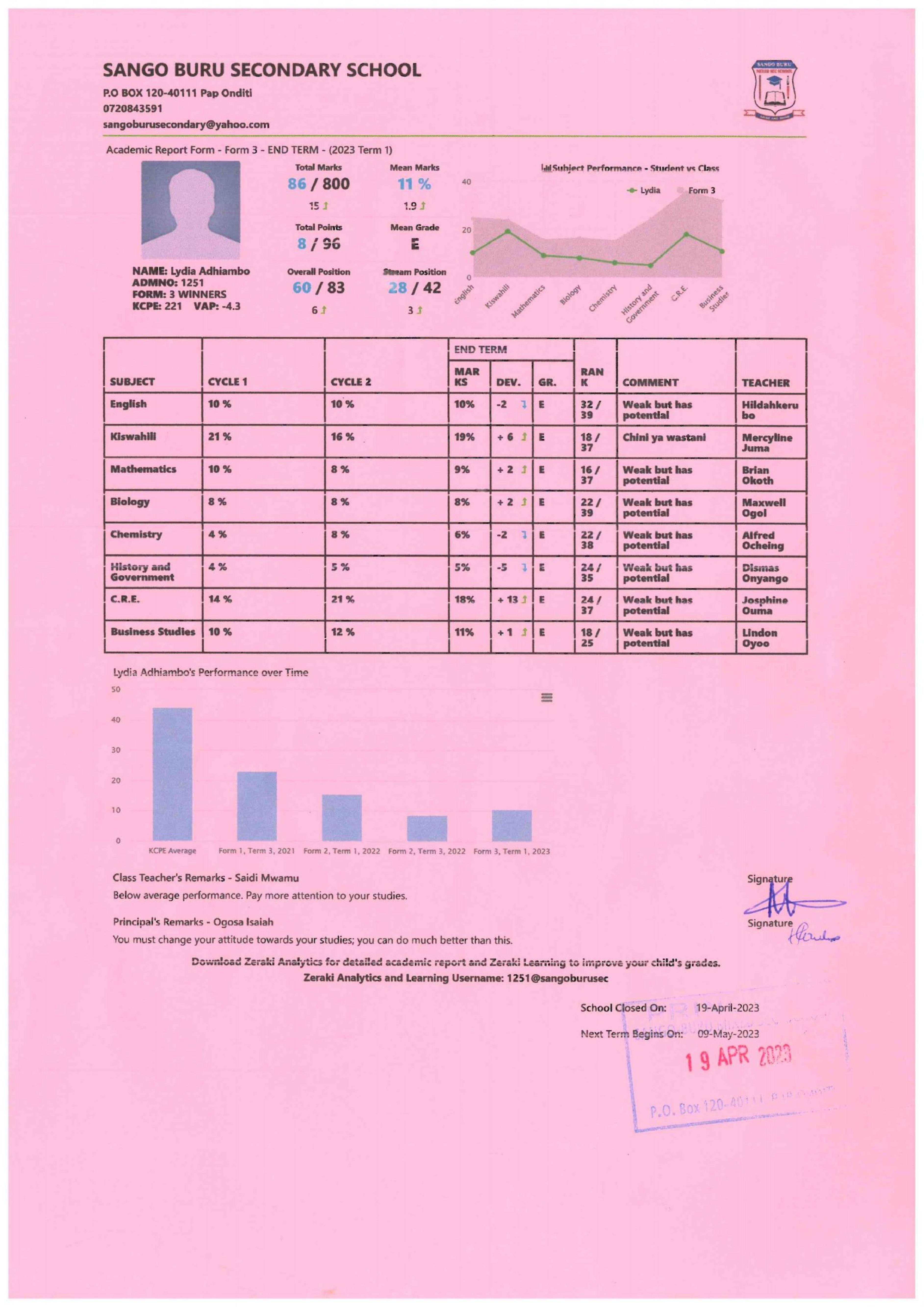 Lydia Adhiambo Okoth byla adoptována v roce 2009 a dnes navštěvuje 8. třídu ve škole Sangoro Primary School.