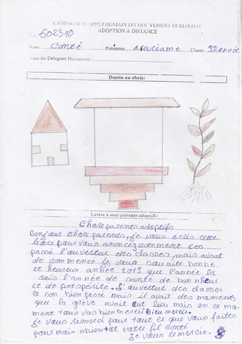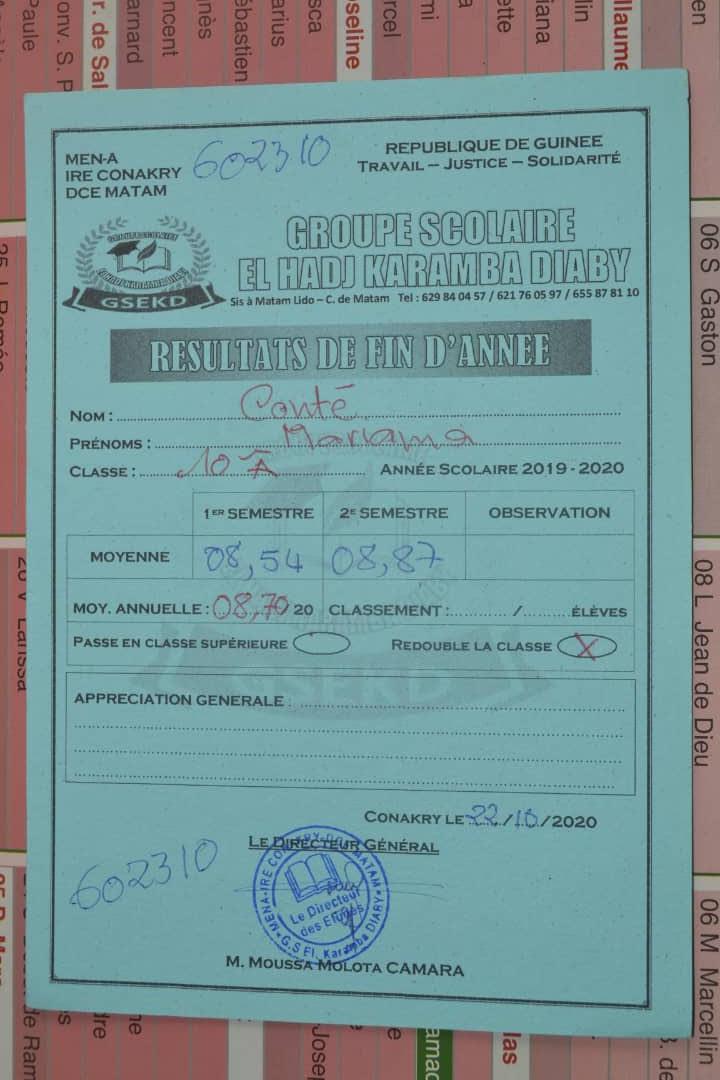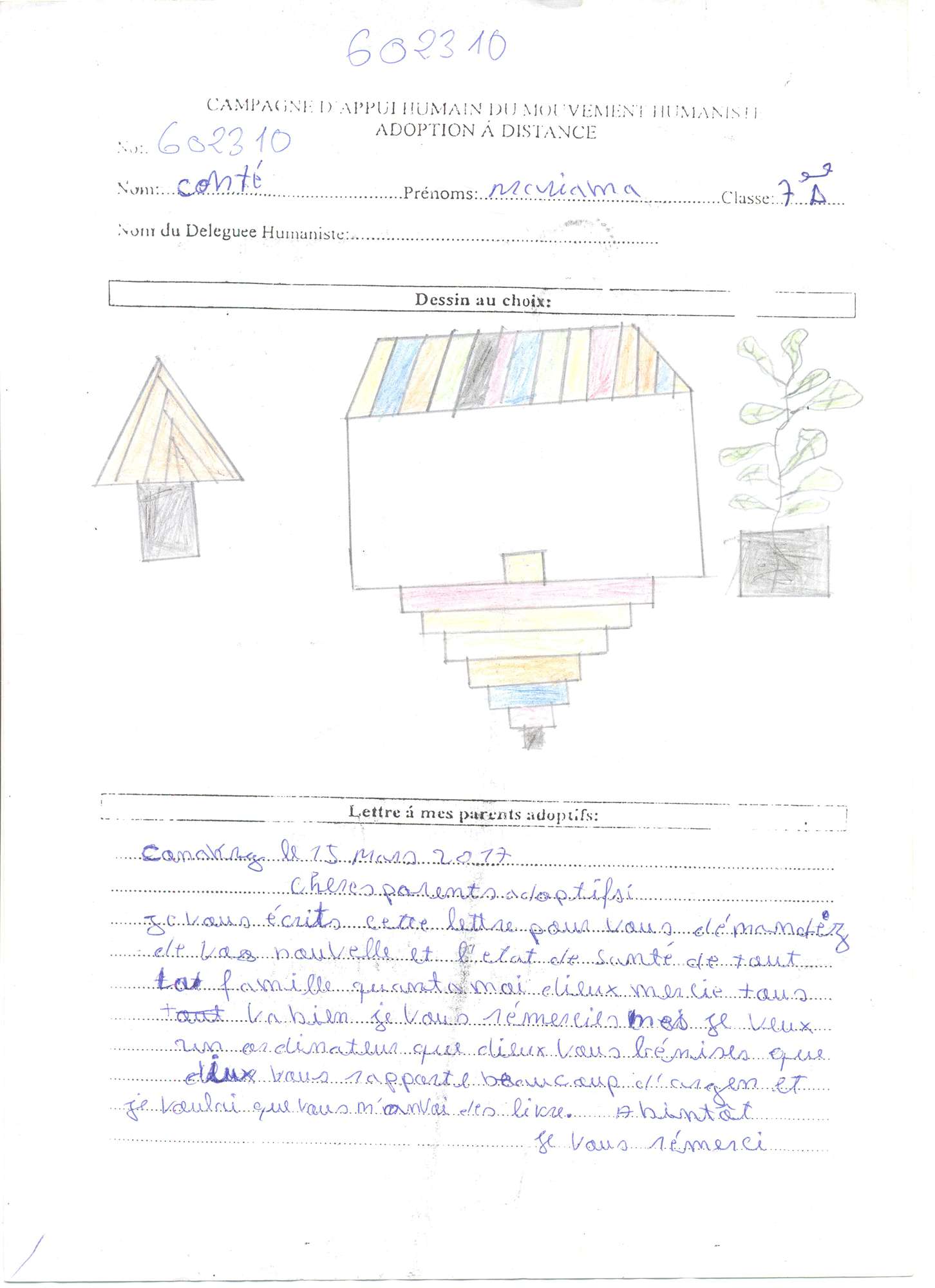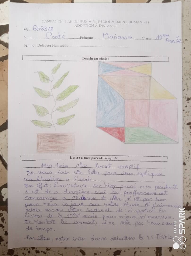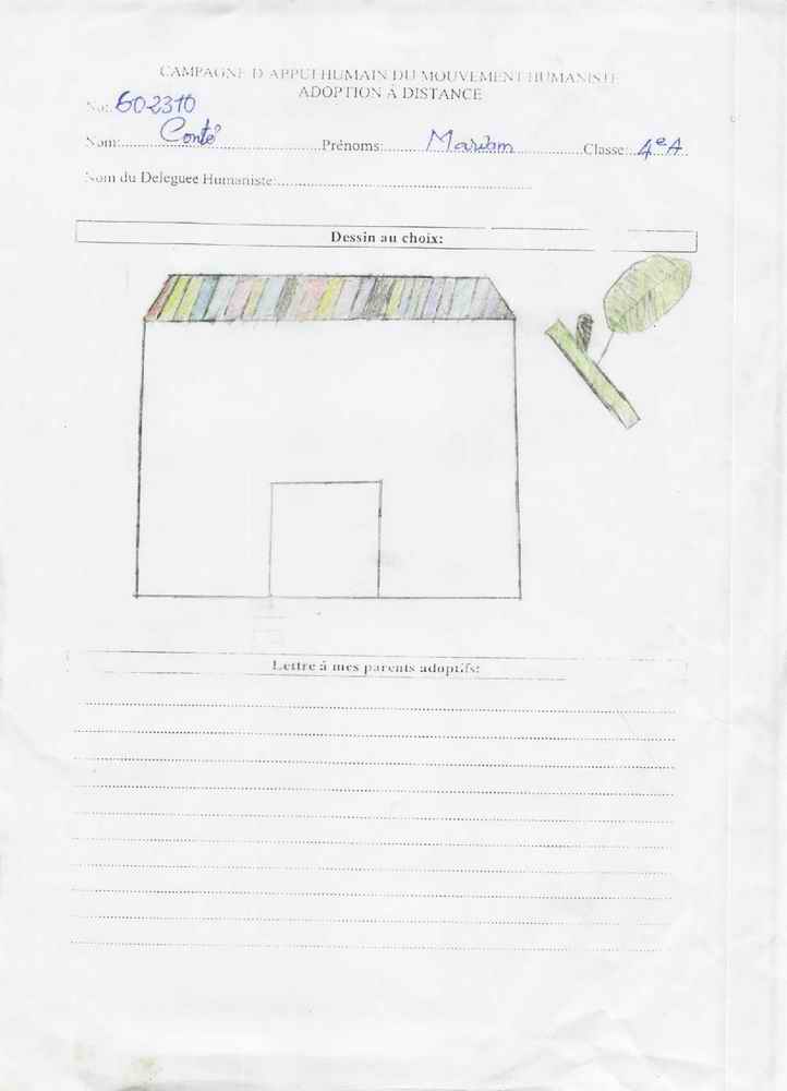 Mariama Conté byla adoptována v roce 2013 a dnes navštěvuje 10. třídu ve škole G.S. Humaniste Thomas Sankara (Matam Lido).