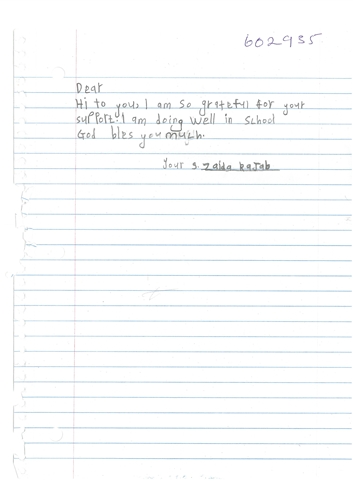 Popis situace: Zaida žije s matkou a dvěma sestrami v hliněném domku ve slumu. Matka nemá stálé zaměstnání, přivydělává si praním a uklízením. Nemůže tak dívce dopřát řádný vstup do školní docházky. V našem programu je i sestřička Hanim (602904).