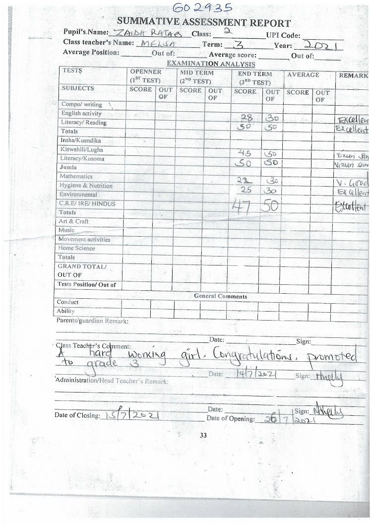 Zaida Rajab Abdulrahman byla adoptována v roce 2018 a dnes navštěvuje školu Utu Montessori School.