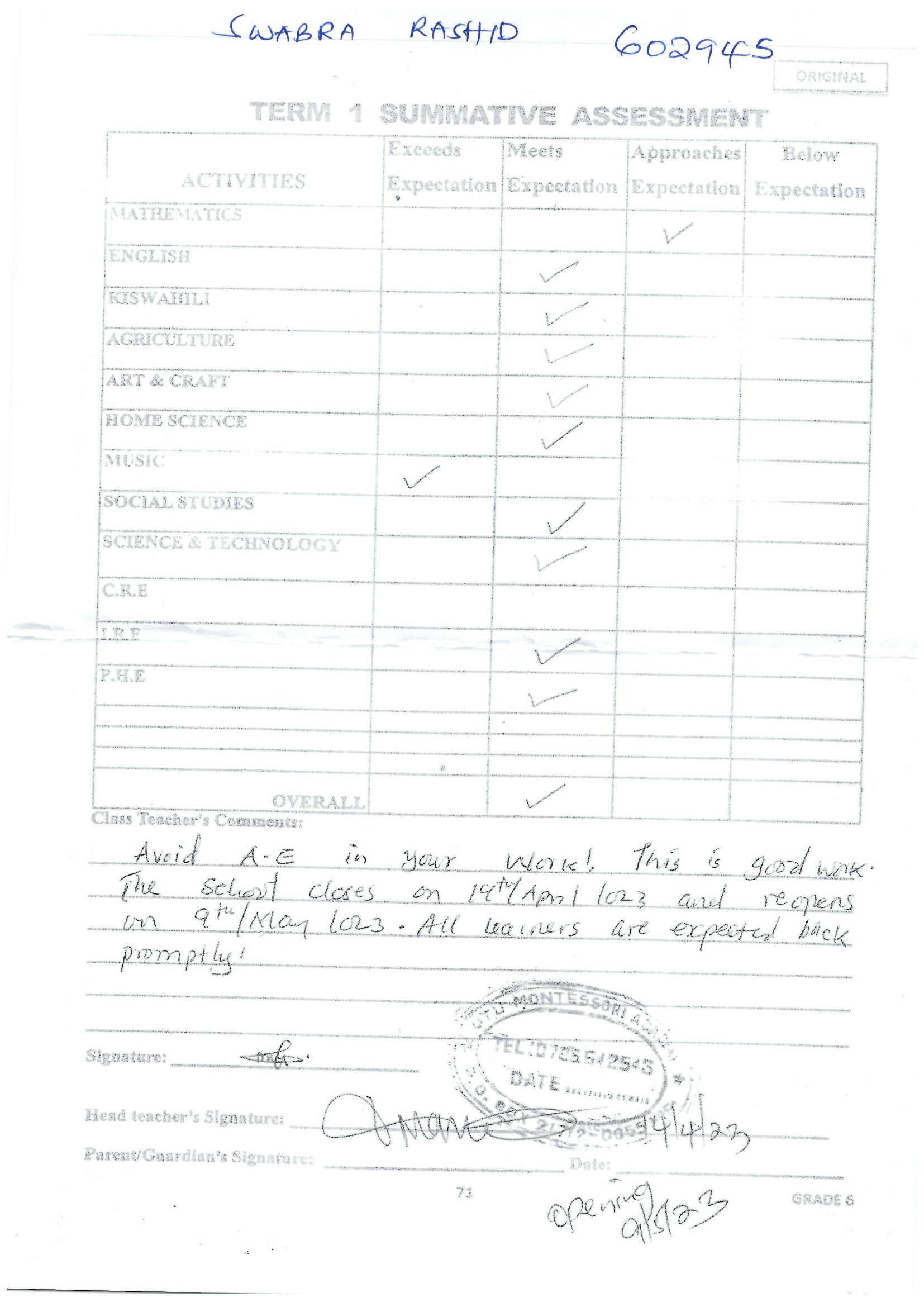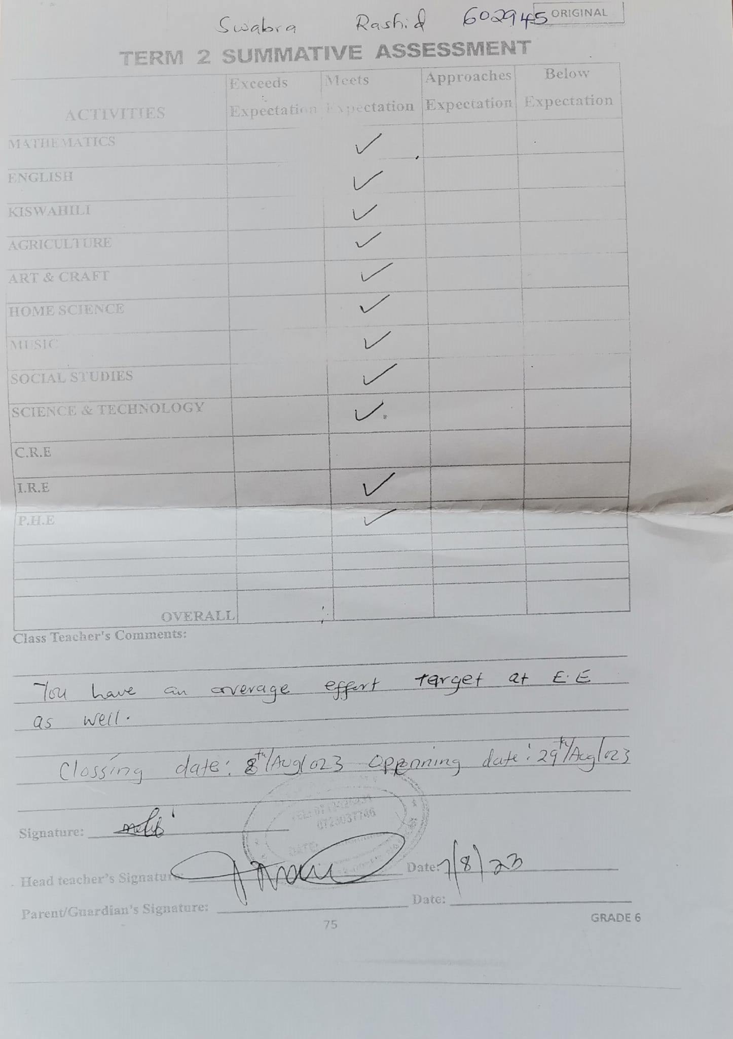 Aby mohlo adoptované dítko začít chodit do školy, musí být uhrazeny peníze za školné alespoň měsíc předem. Tím máme dostatek času převést peníze do Keni a vypsat šek na jméno školy a zaručit jeho doručení do školy - to vše před započetím trimestru. Konkrétně to tedy znamená, že vždy do konce března, července a listopadu musí být na našem účtu 2400 Kč na uhrazení školného na nově začínající trimestr. Adoptivní rodič může platit třikrát ročně nebo jednorázově na celý rok a záleží to čistě na jeho rozhodnutí a možnostech.