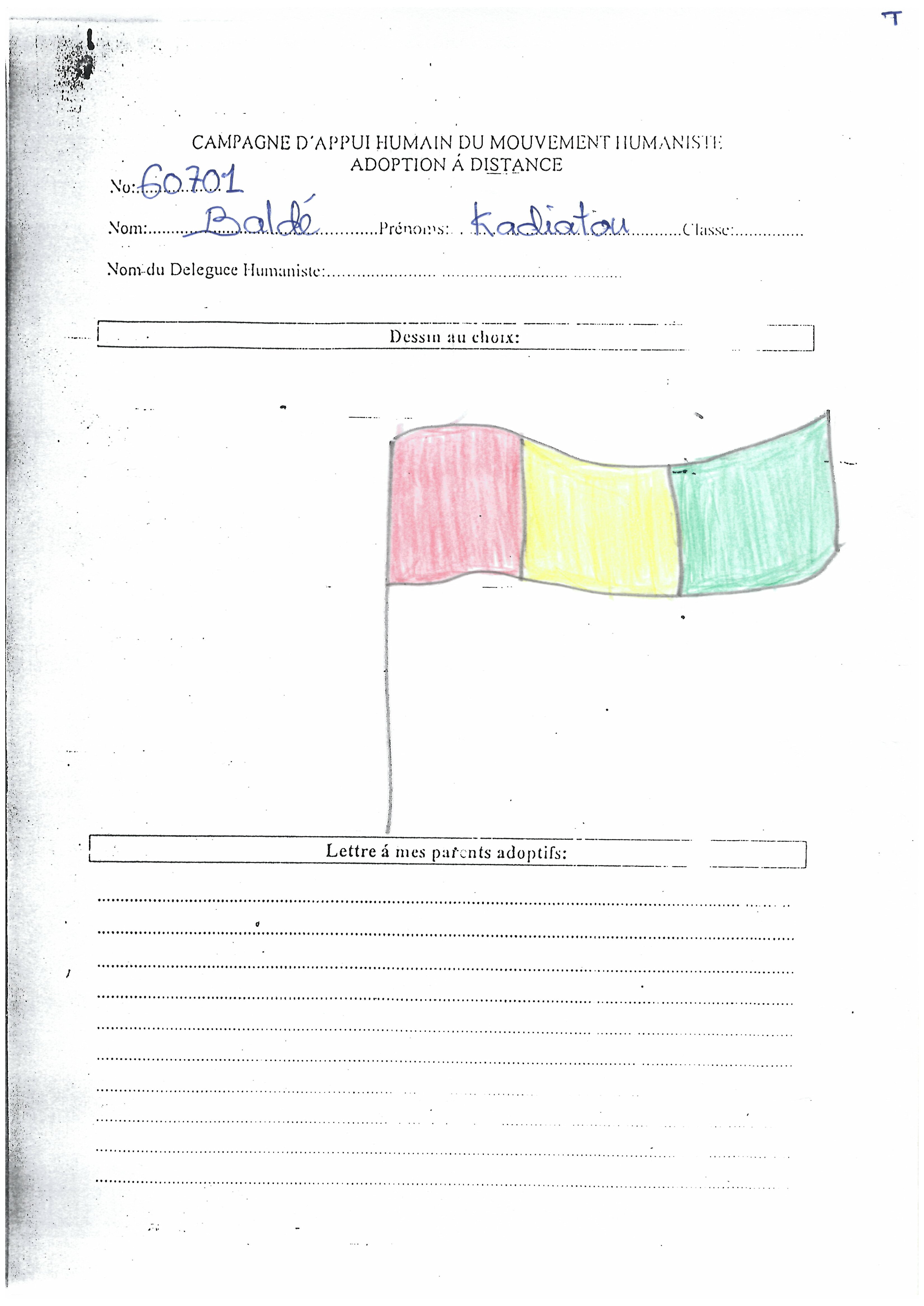 Kadiatou Baldé byla adoptována v roce 2006 a dnes navštěvuje 2. ročník střední školy ve škole G.S.P. Elhadj Karamba Diaby (Matam).