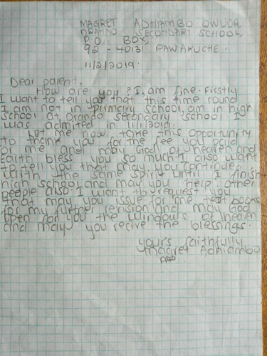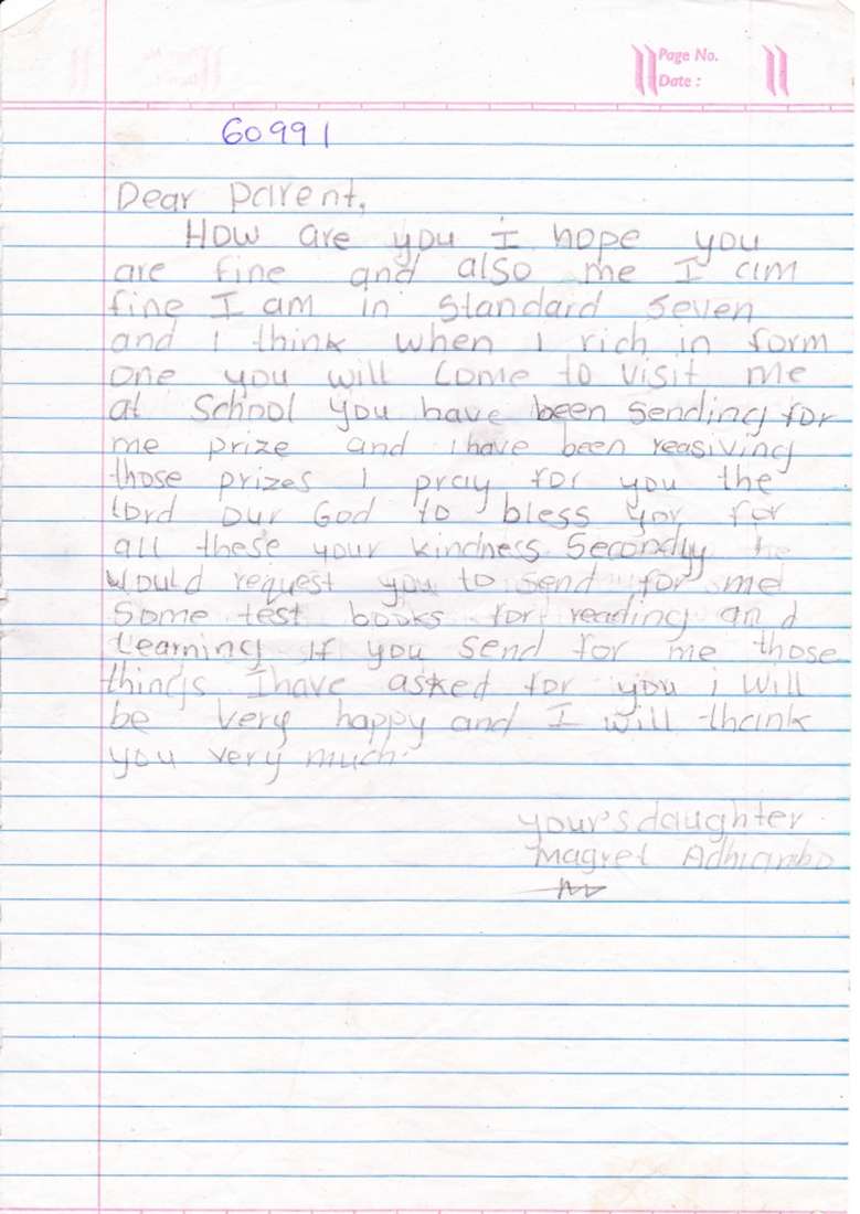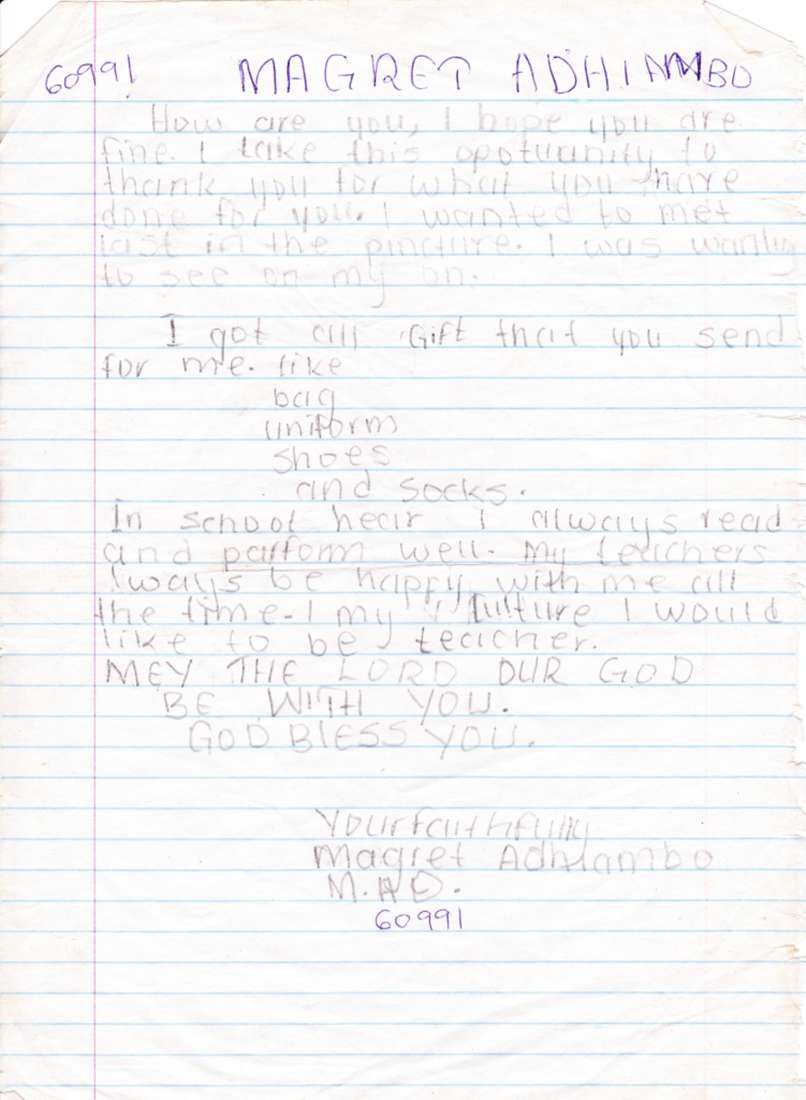 Margaret bude díky podpoře adoptivních rodičů brzy končit základní školu. Chtěla by se stát lékařkou.