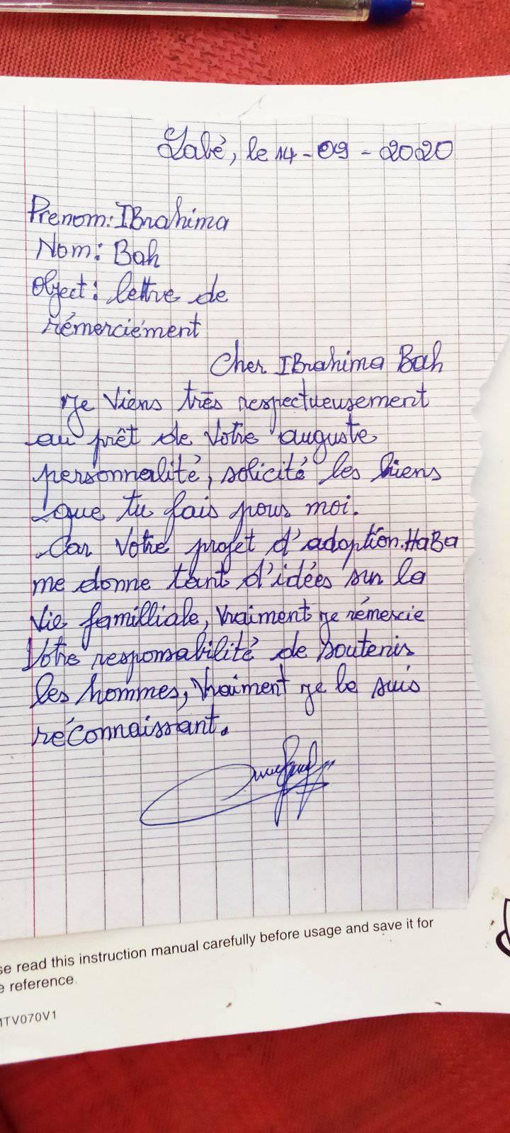 Popis situace: Ibrahima má čtyři sourozence, tatínek si ze svého důchodu nemůže dovolit platit vzdělání všem svým dětem. Chlapec nyní čeká na nového adoptivního rodiče, který by mu poskytl vzdělání.
