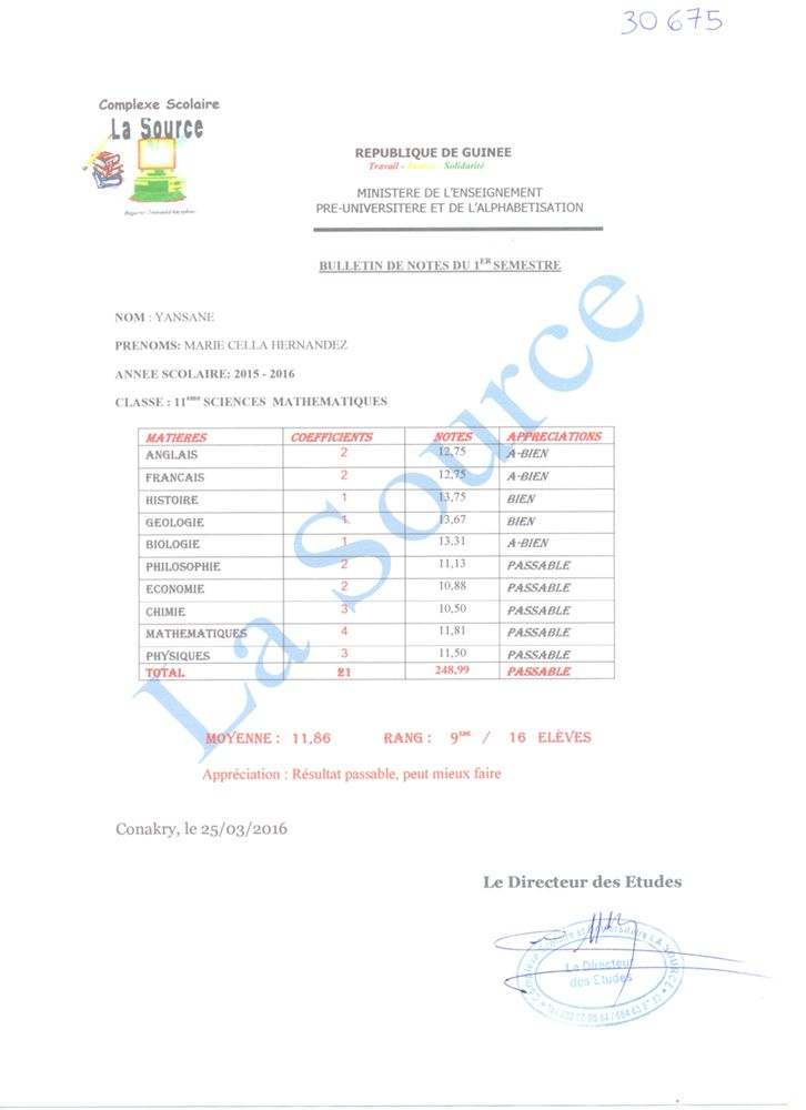 Otec: Mohamed Yansane, nar. 1952, mechanik