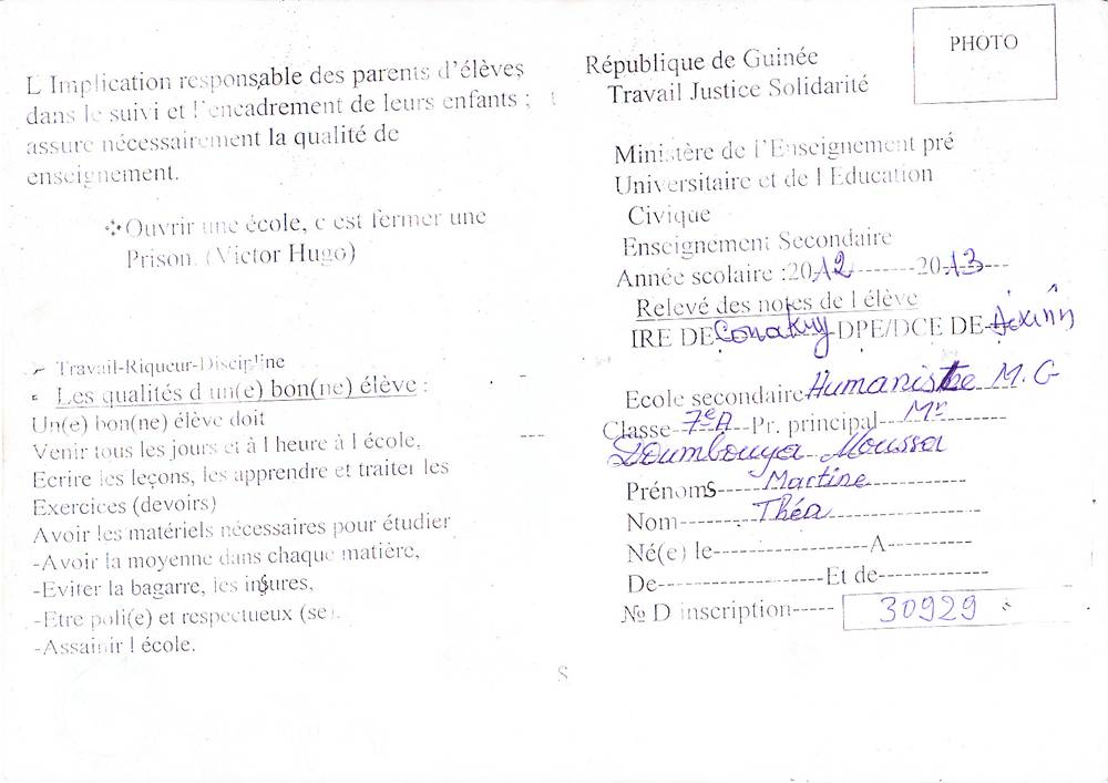 Martine Thea byla adoptována v roce 2006 a dnes navštěvuje 9. třídu ve škole Groupe Scolaire Humaniste Mahatma Gandhi - Hafia.