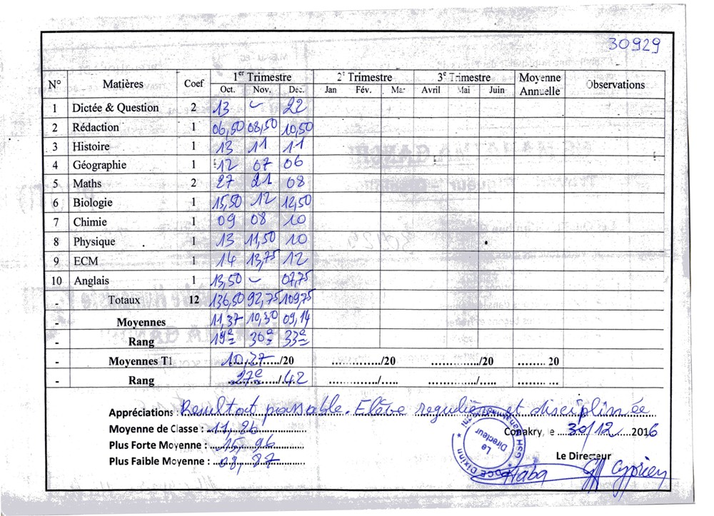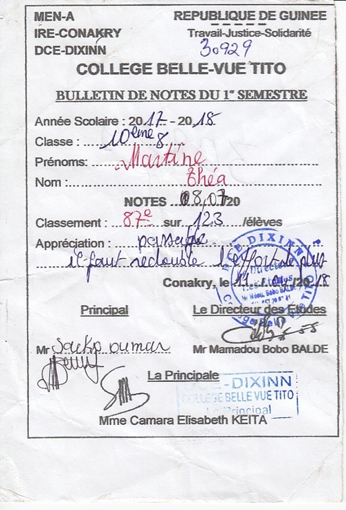 Aby mohlo adoptované dítko začít chodit do školy, musí být uhrazeny peníze za školné alespoň měsíc předem. Tím máme dostatek času zajistit převod peněz do Guineje a vyřídit všechny formality. Konkrétně to tedy znamená, že vždy do konce srpna, listopadu a února musí být na našem účtu 2500 Kč na uhrazení školného na nově začínající trimestr. Adoptivní rodič může platit třikrát ročně nebo jednorázově na celý rok a záleží to čistě na jeho rozhodnutí a možnostech.