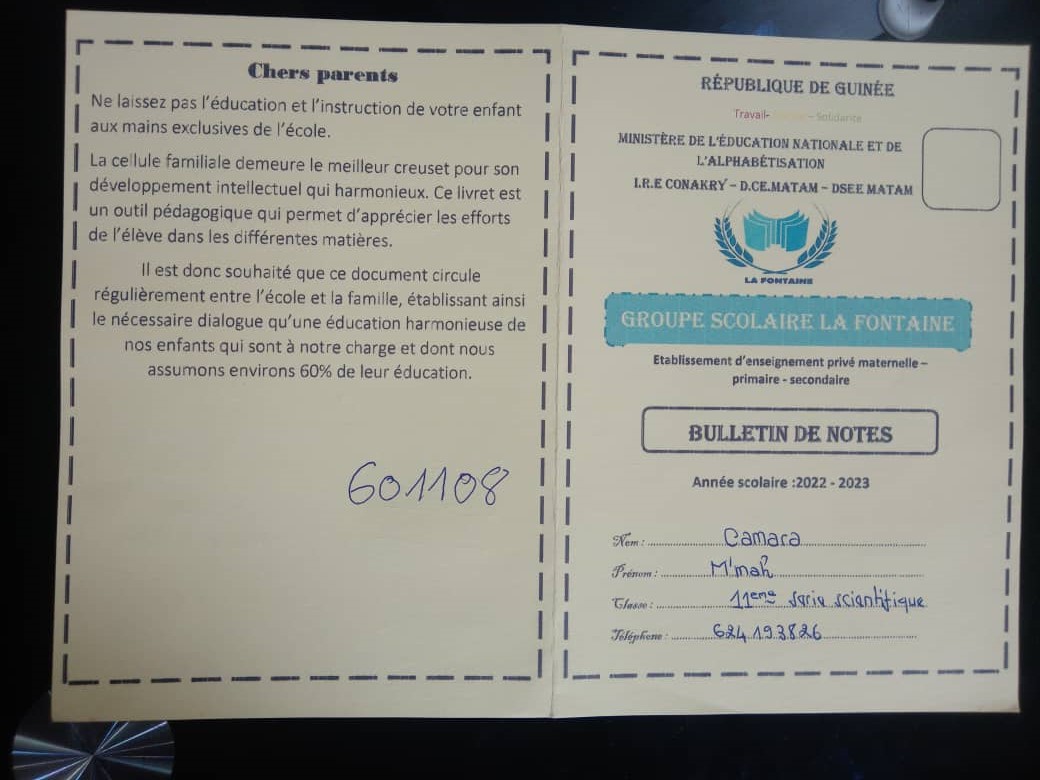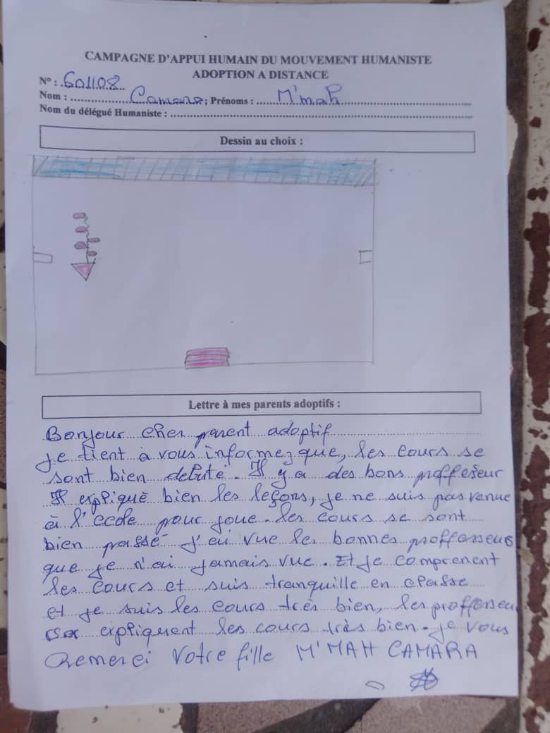 M'Mah Camara byla adoptována v roce 2007 a dnes navštěvuje 8. třídu ve škole G.S.P. Elhadj Karamba Diaby (Matam).