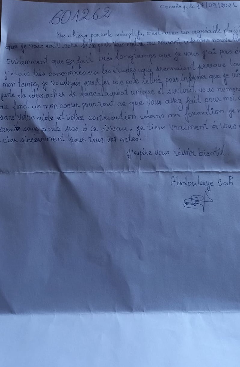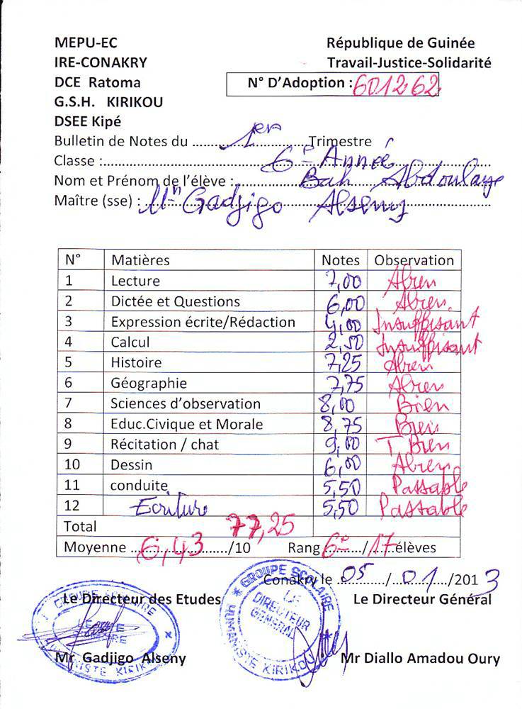 Aby mohlo adoptované dítko začít chodit do školy, musí být uhrazeny peníze za školné alespoň měsíc předem. Tím máme dostatek času zajistit převod peněz do Guineje a vyřídit všechny formality. Konkrétně to tedy znamená, že vždy do konce srpna, listopadu a února musí být na našem účtu 2500 Kč na uhrazení školného na nově začínající trimestr. Adoptivní rodič může platit třikrát ročně nebo jednorázově na celý rok a záleží to čistě na jeho rozhodnutí a možnostech.