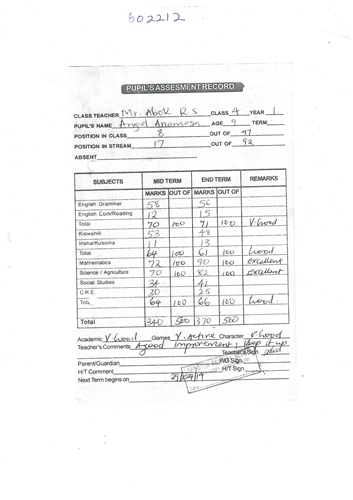 Aby mohlo adoptované dítko začít chodit do školy, musí být uhrazeny peníze za školné alespoň měsíc předem. Tím máme dostatek času převést peníze do Keni a vypsat šek na jméno školy a zaručit jeho doručení do školy - to vše před započetím trimestru. Konkrétně to tedy znamená, že vždy do konce března, července a listopadu musí být na našem účtu 2400 Kč na uhrazení školného na nově začínající trimestr. Adoptivní rodič může platit třikrát ročně nebo jednorázově na celý rok a záleží to čistě na jeho rozhodnutí a možnostech.