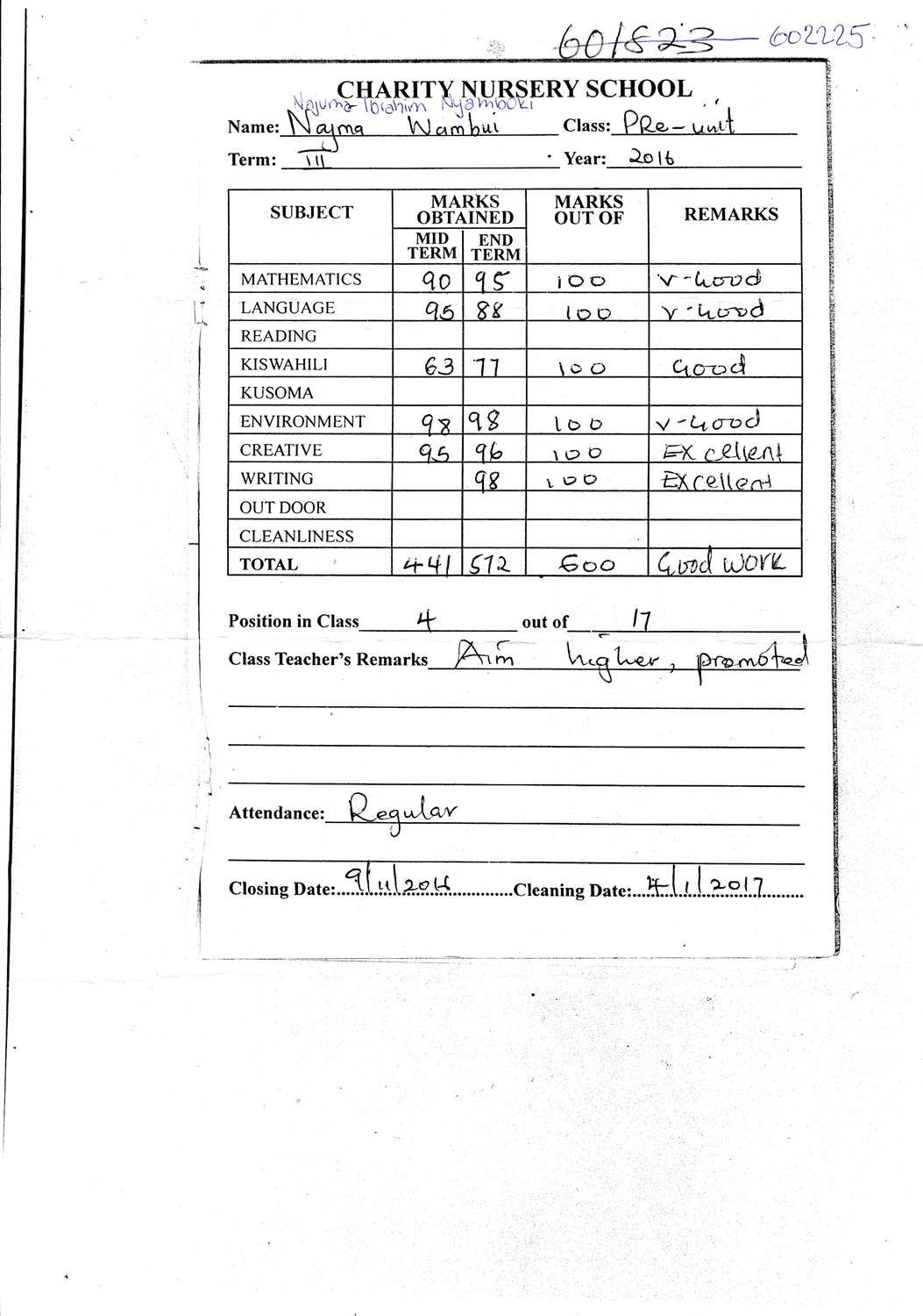 Najma Ibrahim Nyamboki byla adoptována v roce 2014 a dnes navštěvuje 3. třídu ve škole Kilimani Primary School.