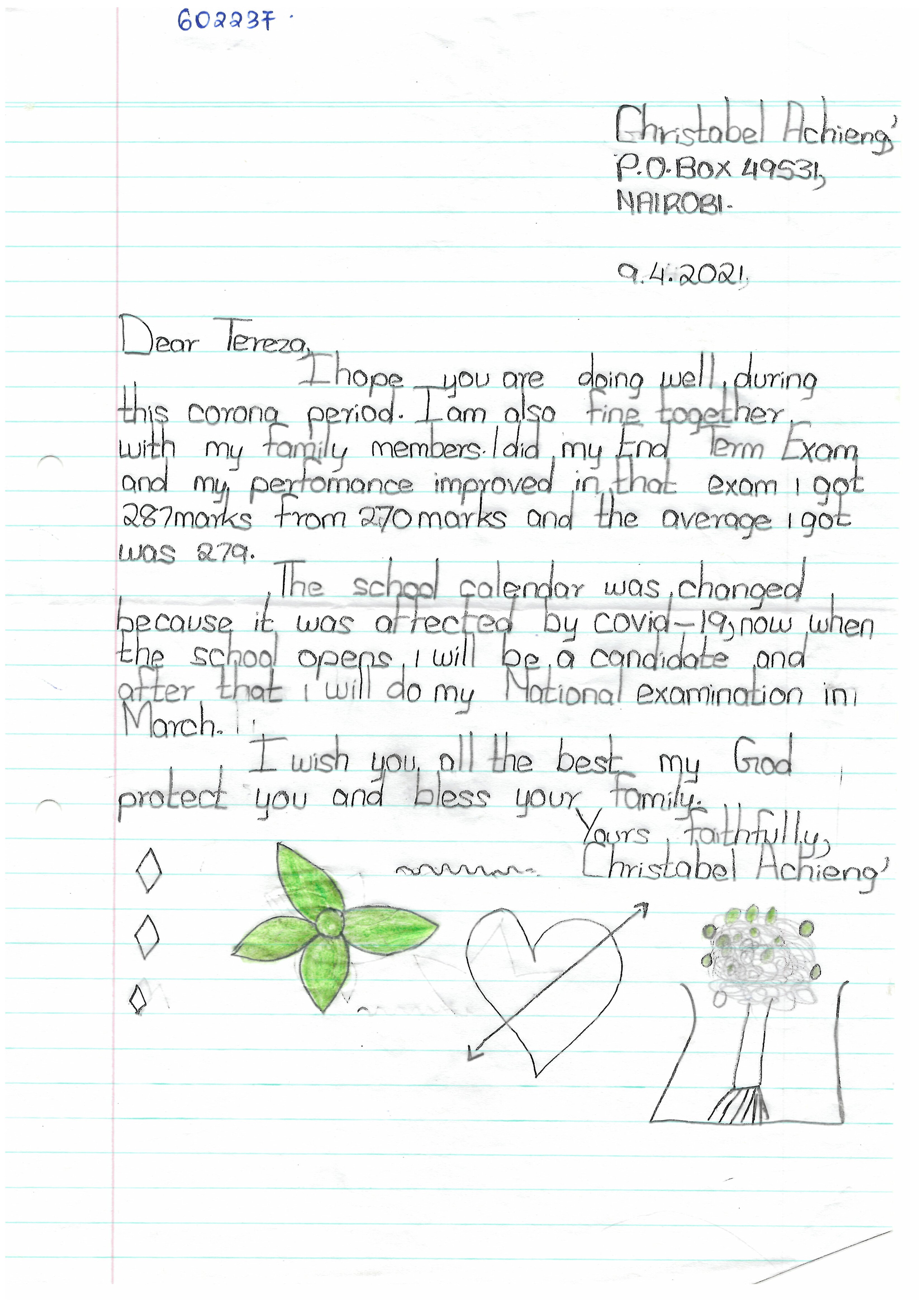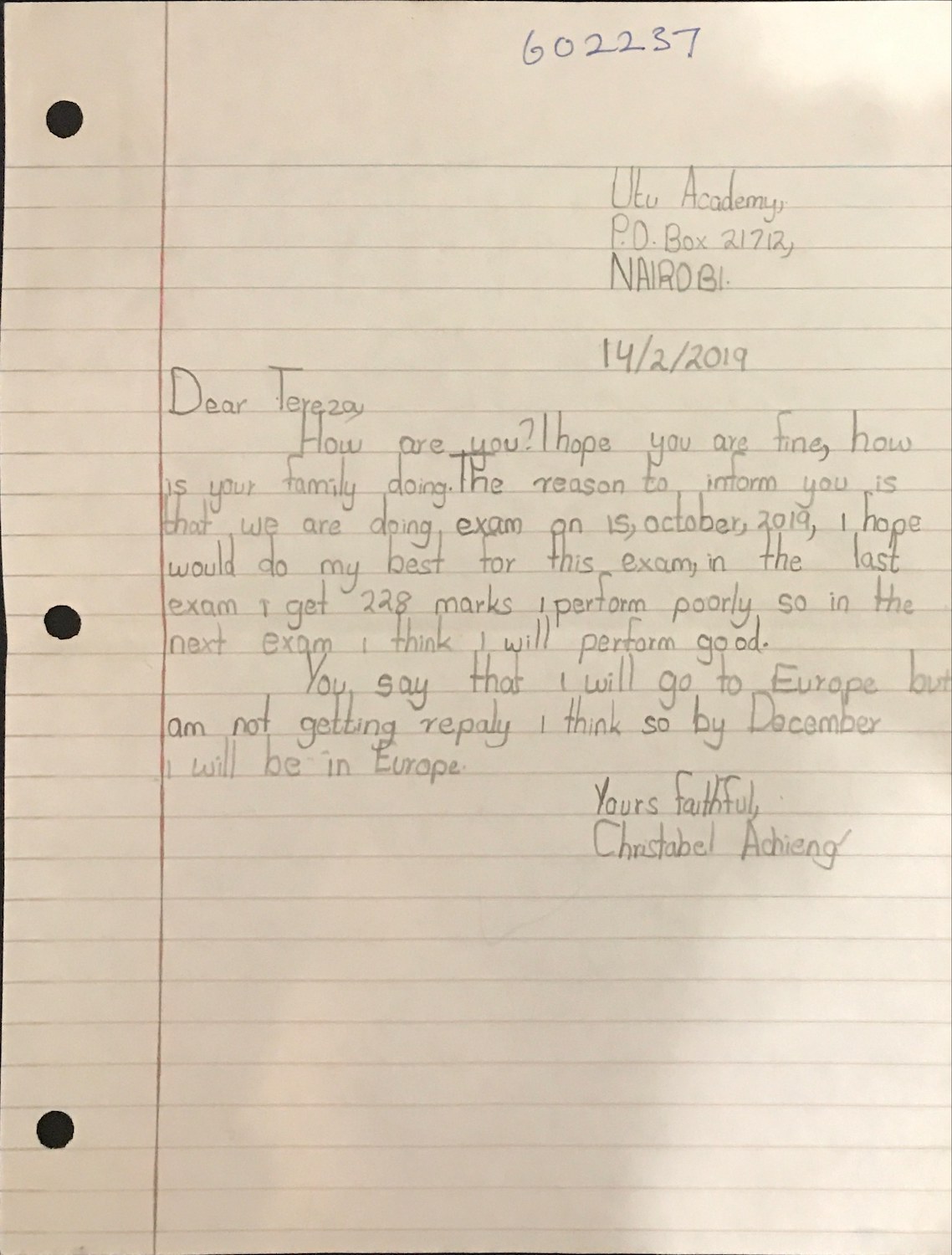 Christabel Okwiri byla adoptována v roce 2015 a dnes navštěvuje 7. třídu ve škole Utu Montessori School.