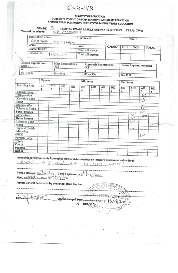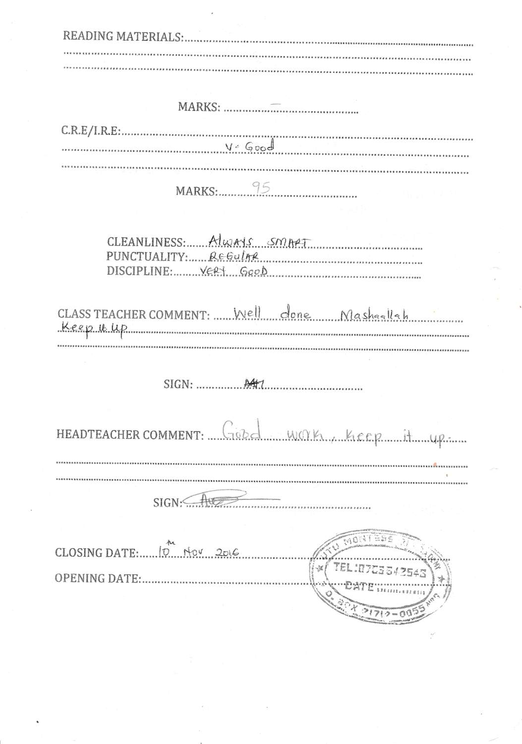 Aby mohlo adoptované dítko začít chodit do školy, musí být uhrazeny peníze za školné alespoň měsíc předem. Tím máme dostatek času převést peníze do Keni a vypsat šek na jméno školy a zaručit jeho doručení do školy - to vše před započetím trimestru. Konkrétně to tedy znamená, že vždy do konce března, července a listopadu musí být na našem účtu 2400 Kč na uhrazení školného na nově začínající trimestr. Adoptivní rodič může platit třikrát ročně nebo jednorázově na celý rok a záleží to čistě na jeho rozhodnutí a možnostech.