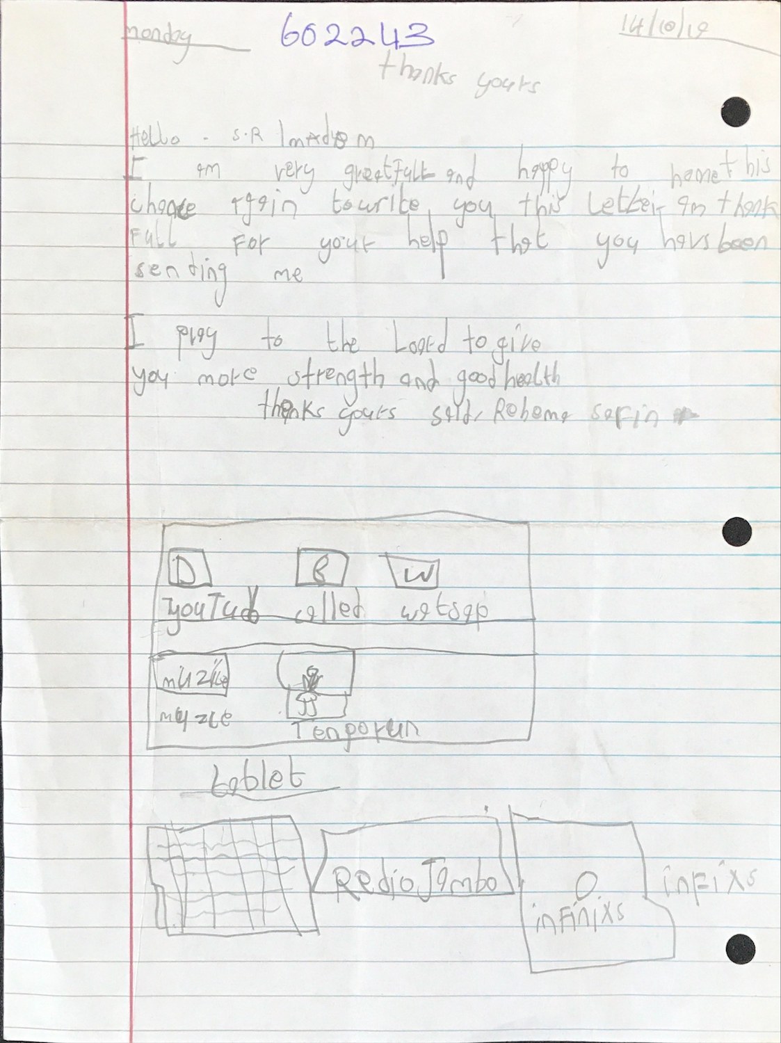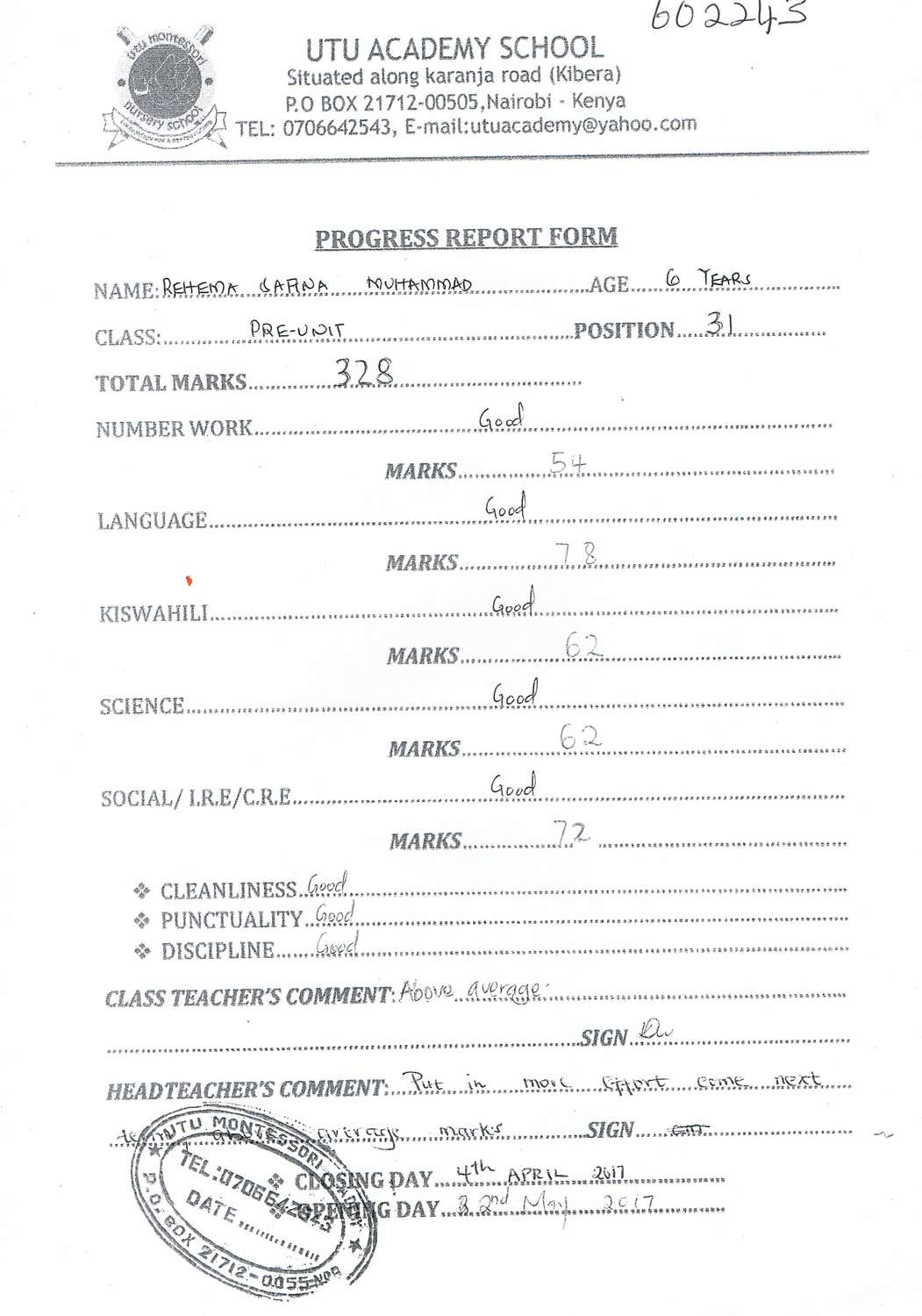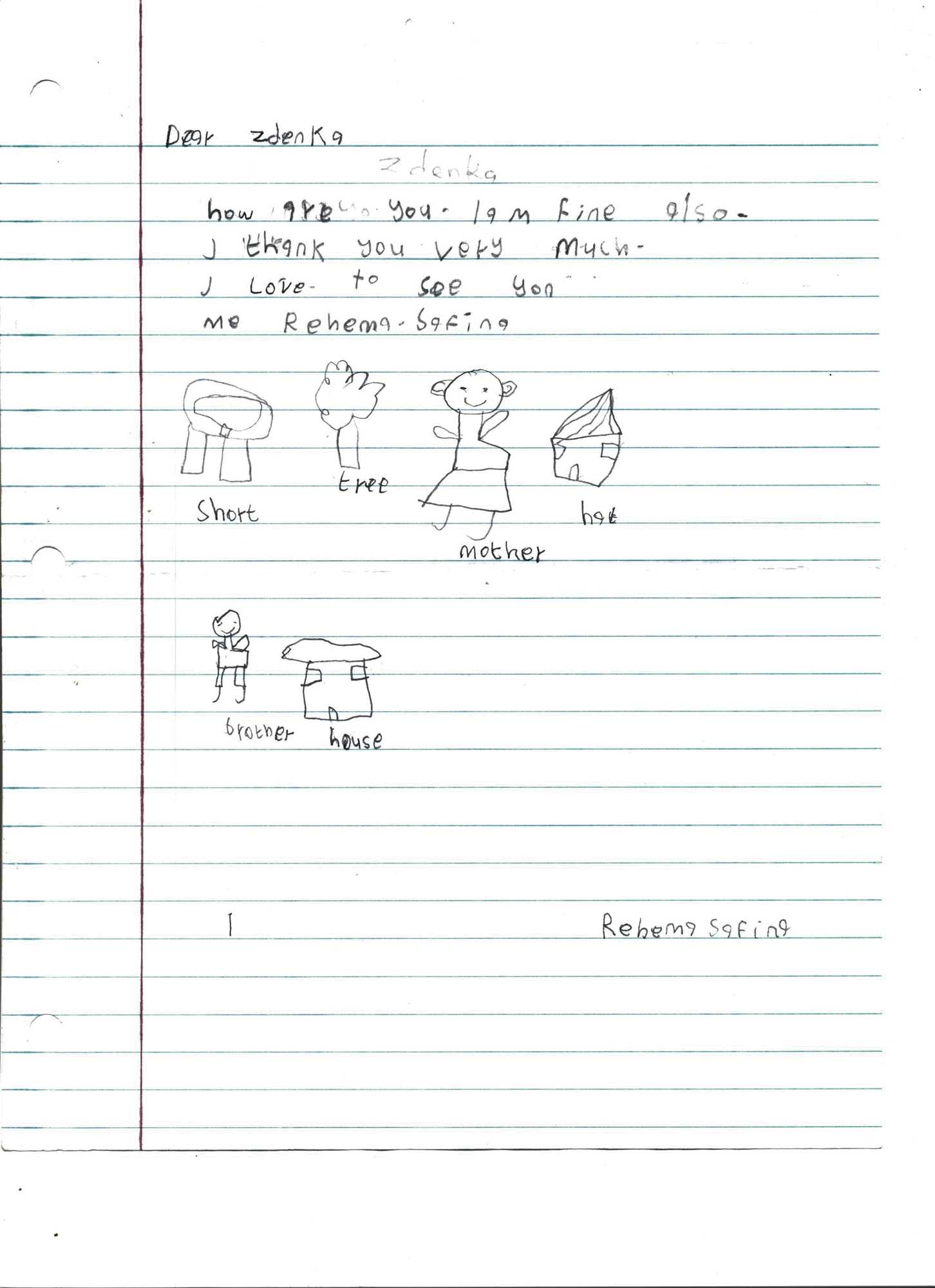 Popis situace: Rehema bydlí společně se svojí matkou ve slumu v Kibeře v hliněném domě. Její matka je žena v domácnosti. Díky adoptivnímu rodiči se dostala do 6. třídy. O finanční podporu však nedávno přišla, a proto hledá dobrou duši, která by ji pomohla splnit si sen stát se módní návrhářkou.