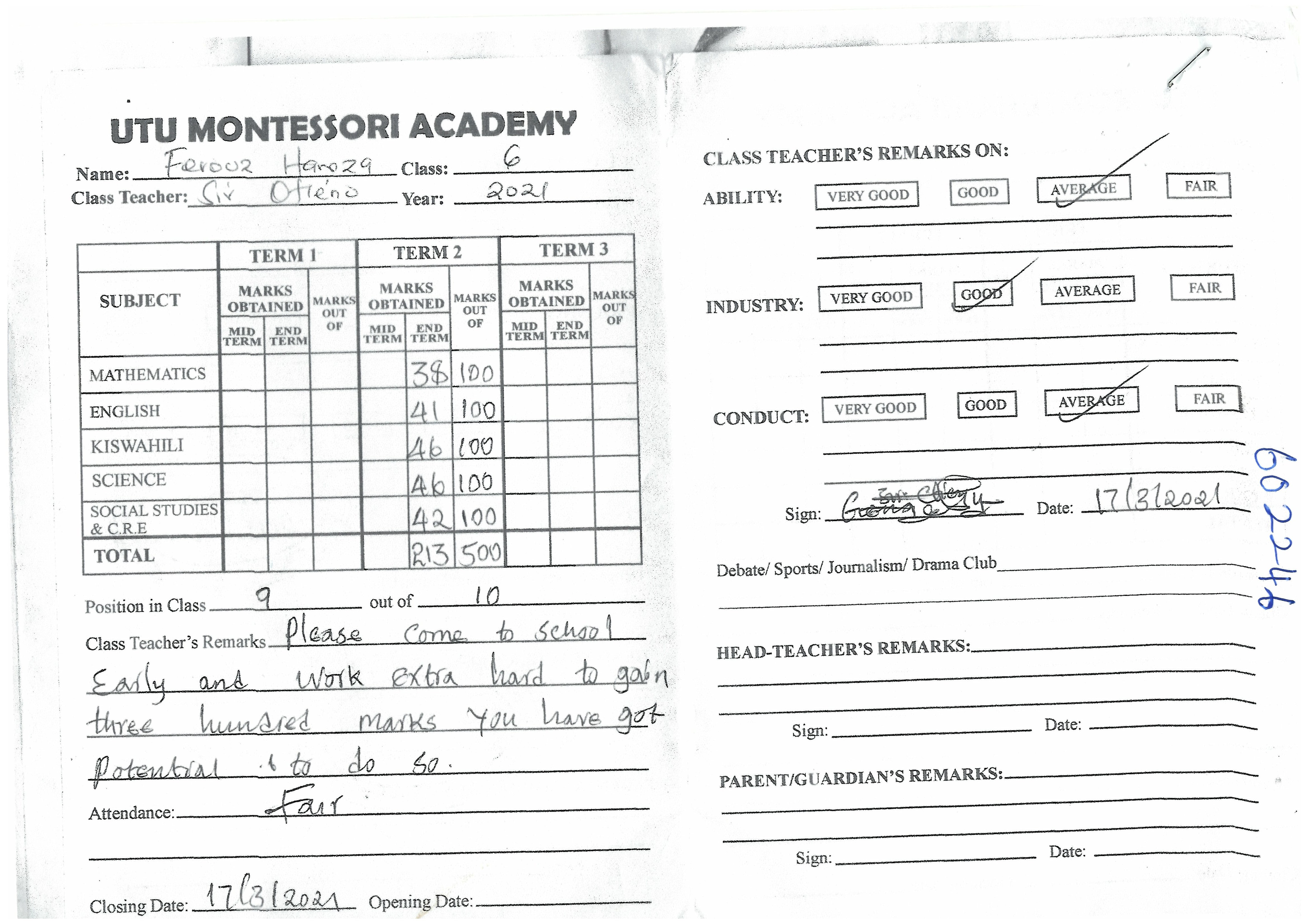 Adopce dětí z Keni přijde na 7200 Kč ročně, což odpovídá 600 Kč měsíčně. Školní rok v Keni je rozdělen na tři trimestry, mezi nimiž je vždy jeden měsíc prázdnin. První trimestr začíná v lednu, druhý v květnu a třetí v září.