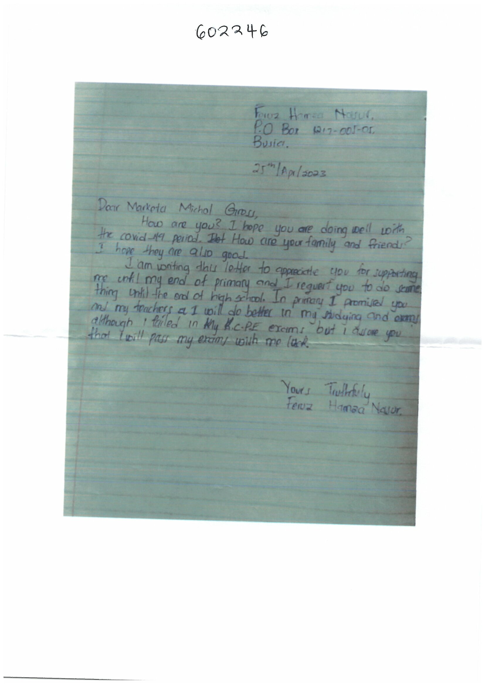 Aby mohlo adoptované dítko začít chodit do školy, musí být uhrazeny peníze za školné alespoň měsíc předem. Tím máme dostatek času převést peníze do Keni a vypsat šek na jméno školy a zaručit jeho doručení do školy - to vše před započetím trimestru. Konkrétně to tedy znamená, že vždy do konce března, července a listopadu musí být na našem účtu 2400 Kč na uhrazení školného na nově začínající trimestr. Adoptivní rodič může platit třikrát ročně nebo jednorázově na celý rok a záleží to čistě na jeho rozhodnutí a možnostech.