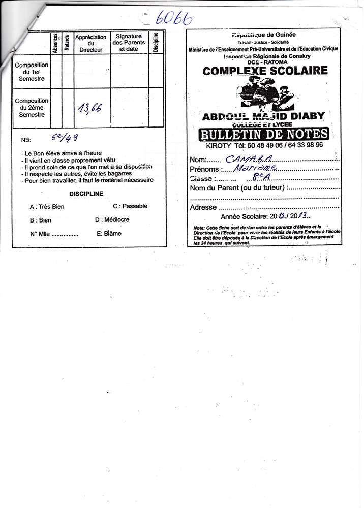 Otec: Abdoulaye Camara, nar. 1967, řidič