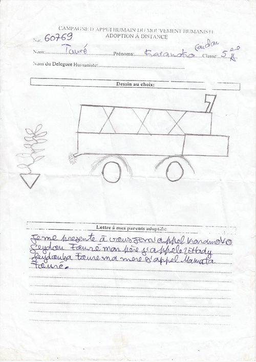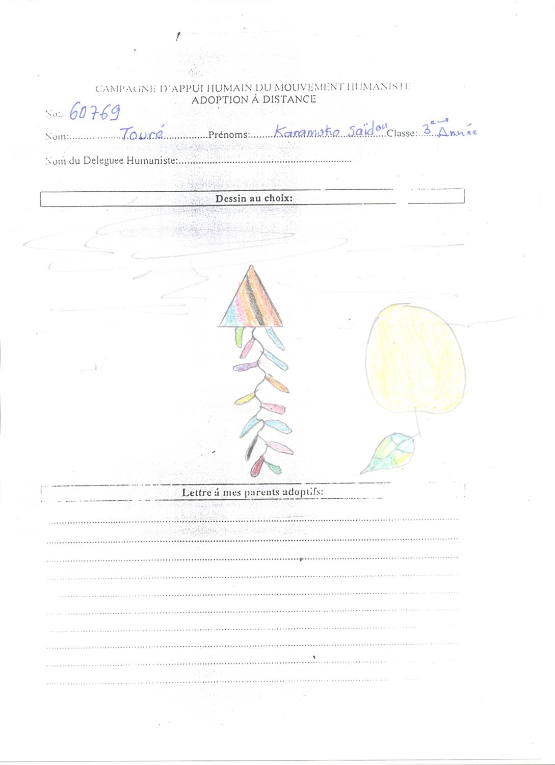 Karamoko Saidou Touré byl adoptován v roce 2007 a dnes navštěvuje 7. třídu ve škole G.S. Humaniste Thomas Sankara (Matam Lido).