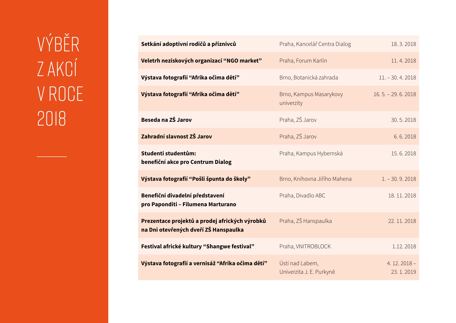 Ve výroční zprávě naleznete informace o našich keňských a guinejských školách a dalších projektech v Africe, přehled akcí v roce 2018, náš tým v ČR i v Africe a spoustu dalších zajimavých informací, které nesmíte přehlédnout! Přejeme hezké čtení!