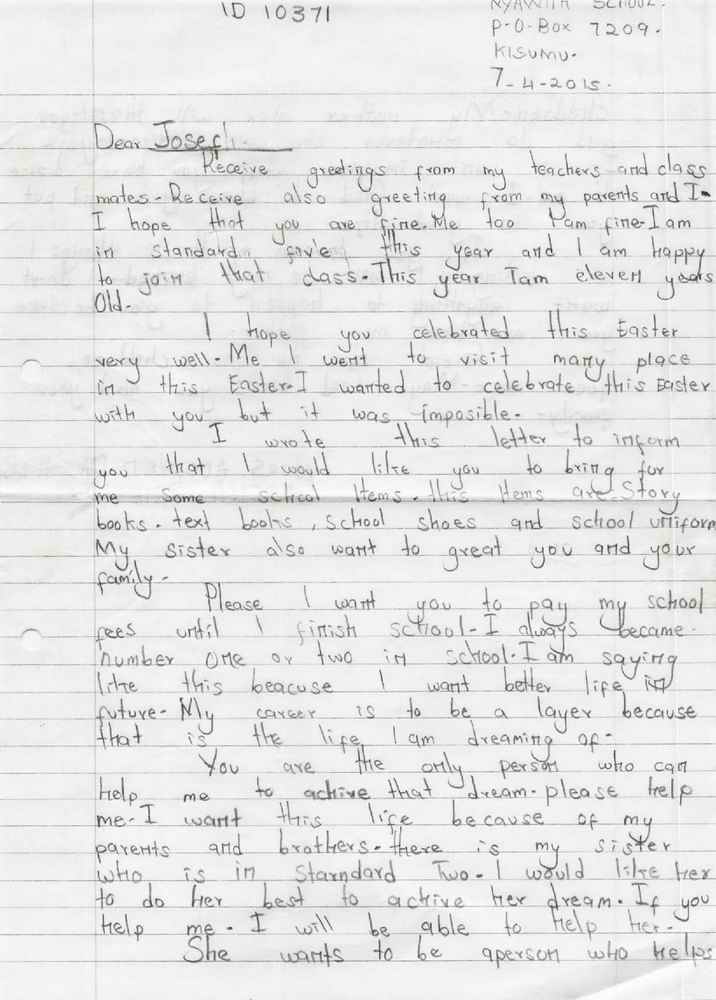 Adopce dětí z Keni přijde na 7200 Kč ročně, což odpovídá 600 Kč měsíčně. Školní rok v Keni je rozdělen na tři trimestry, mezi nimiž je vždy jeden měsíc prázdnin. První trimestr začíná v lednu, druhý v květnu a třetí v září.