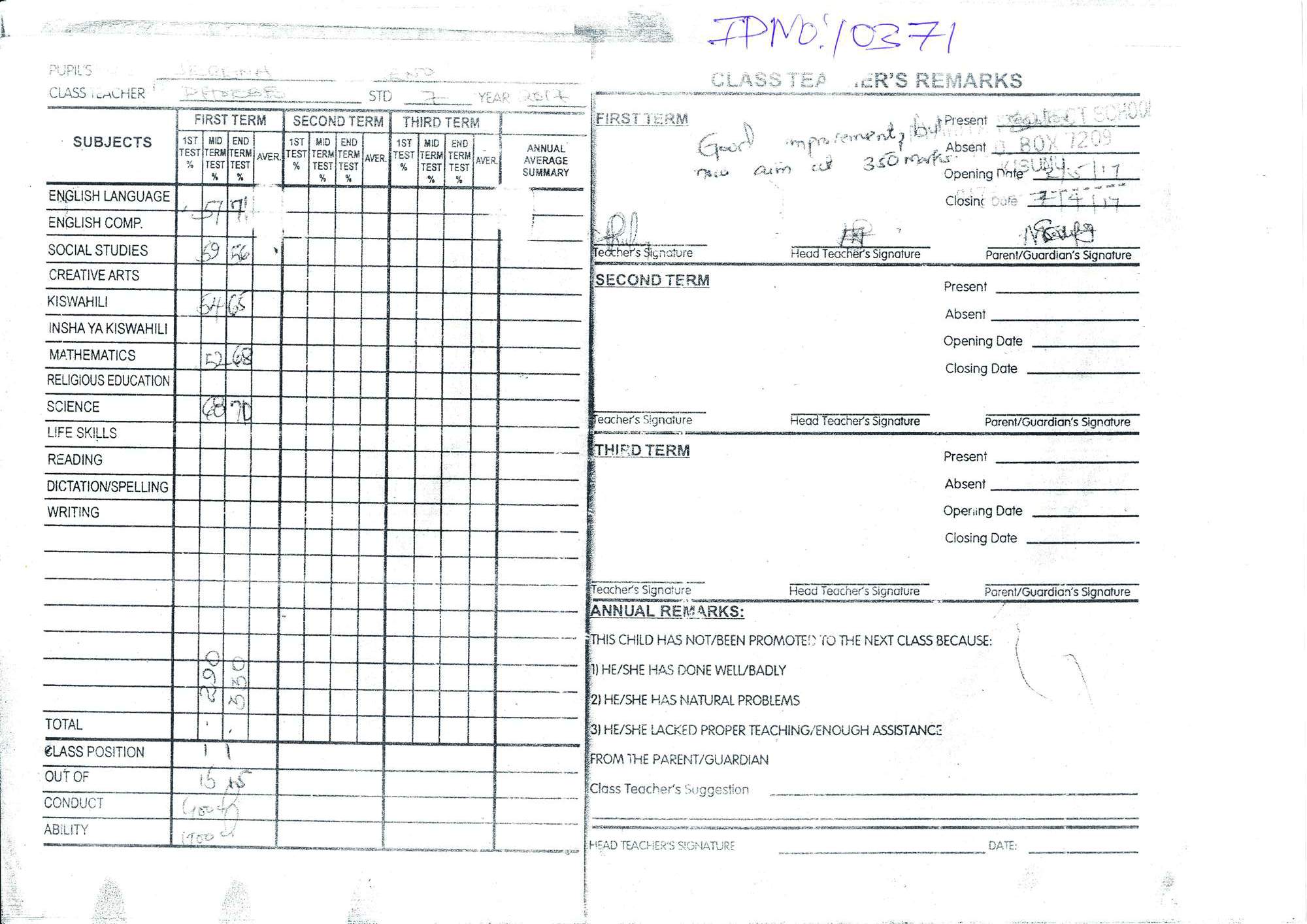 Označení dítěte v databázi: 10371