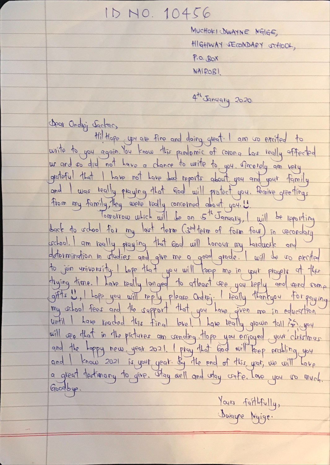 Aby mohlo adoptované dítko začít chodit do školy, musí být uhrazeny peníze za školné alespoň měsíc předem. Tím máme dostatek času převést peníze do Keni a vypsat šek na jméno školy a zaručit jeho doručení do školy - to vše před započetím trimestru. Konkrétně to tedy znamená, že vždy do konce března, července a listopadu musí být na našem účtu 2400 Kč na uhrazení školného na nově začínající trimestr. Adoptivní rodič může platit třikrát ročně nebo jednorázově na celý rok a záleží to čistě na jeho rozhodnutí a možnostech.