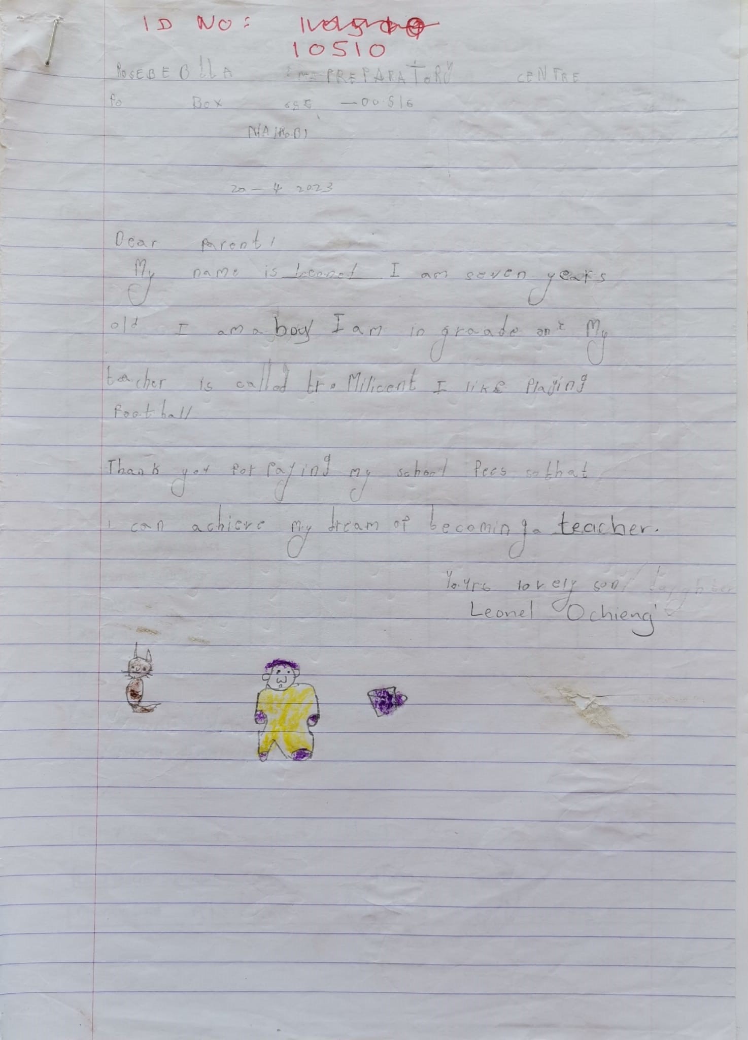 Leonel Ochieng Odhiambo byl adoptován v roce 2023 a dnes navštěvuje 1.ročník školky ve škole Rosebella Preparatory Academy.