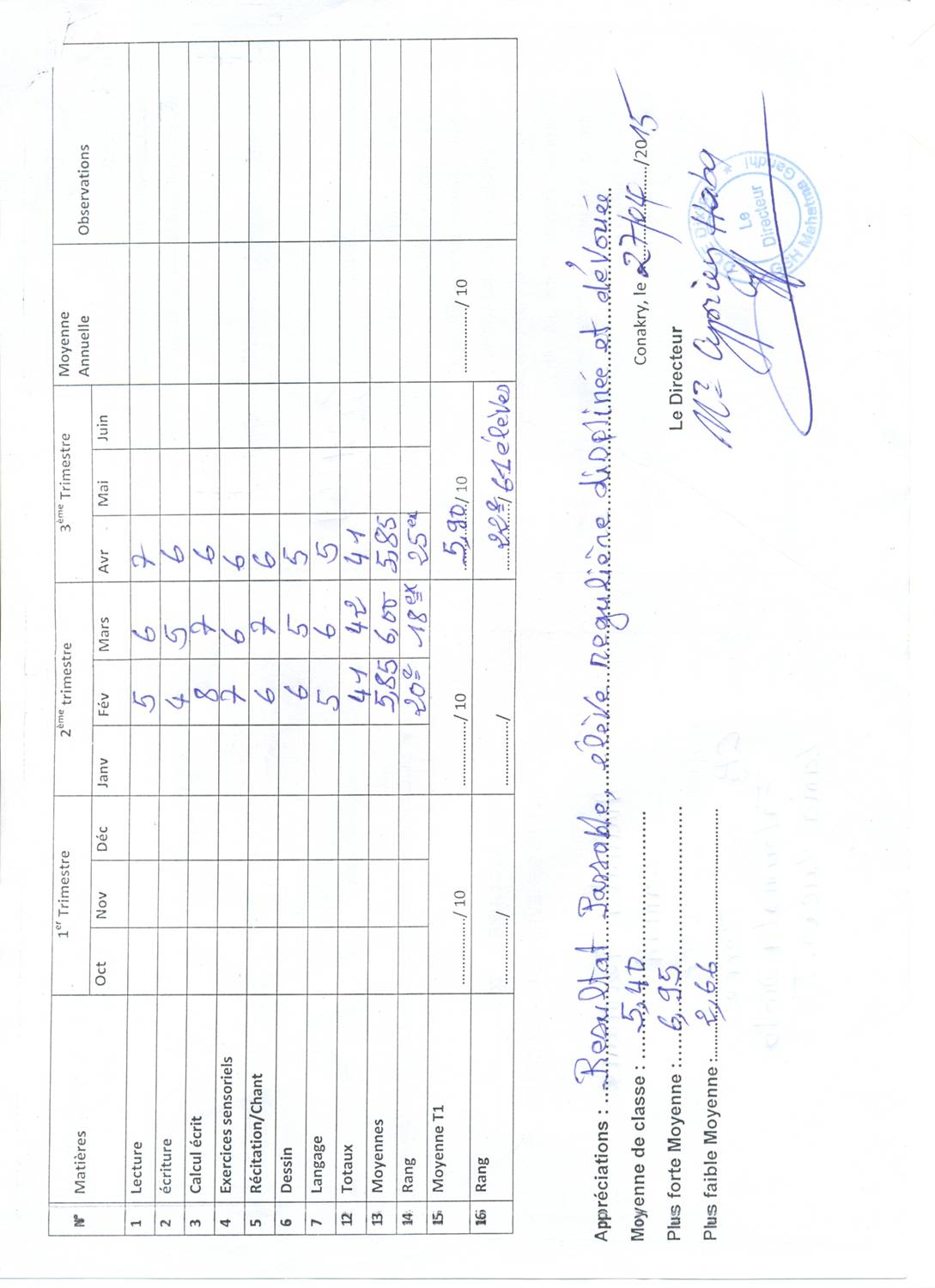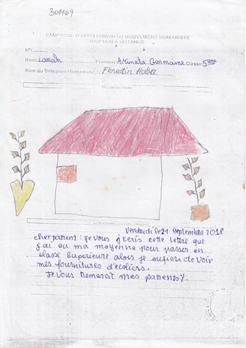 Aminata Germaine Lamah byla adoptována v roce 2014 a dnes navštěvuje 6. třídu ve škole Groupe Scolaire Humaniste Mahatma Gandhi - Hafia.
