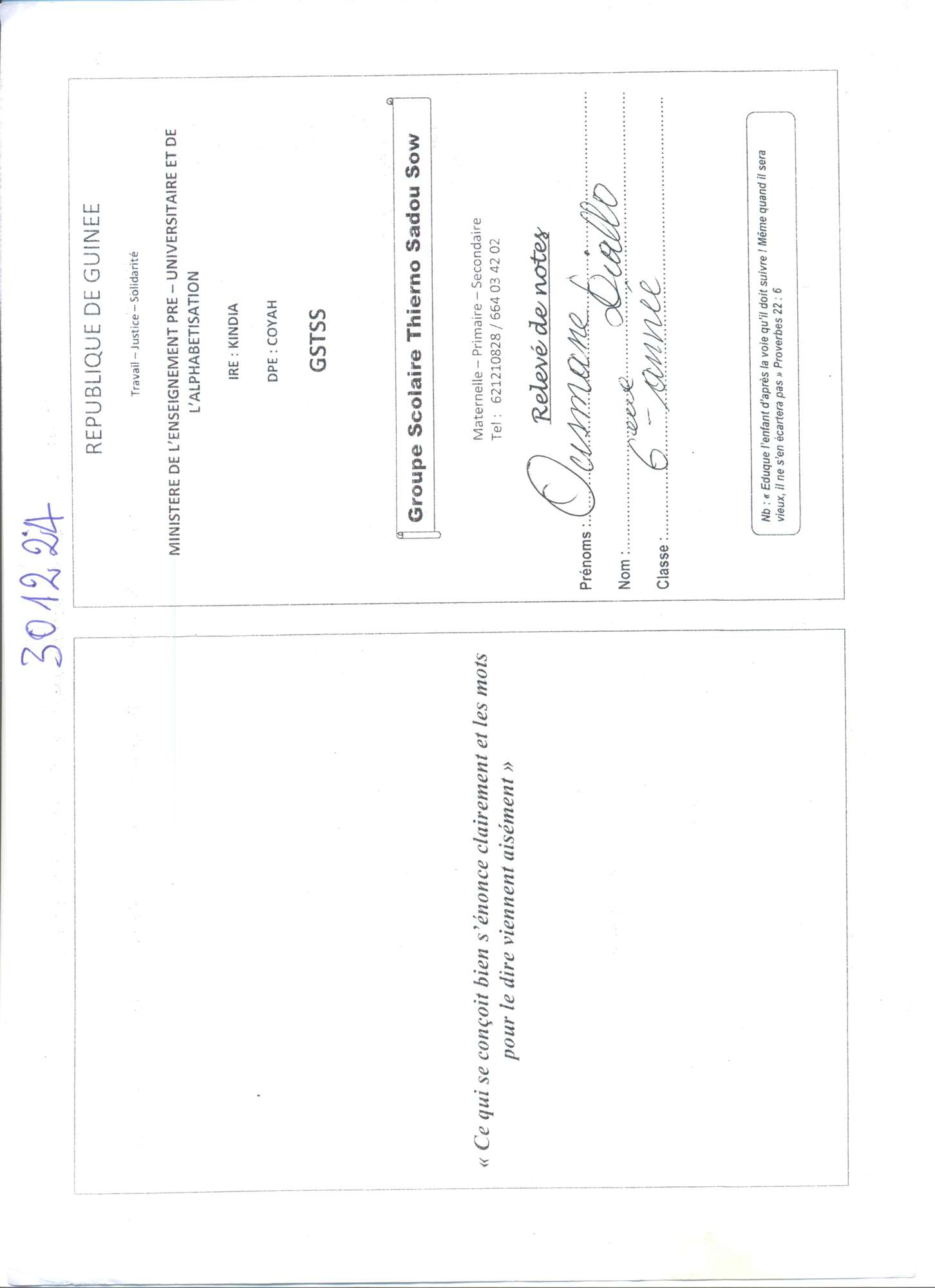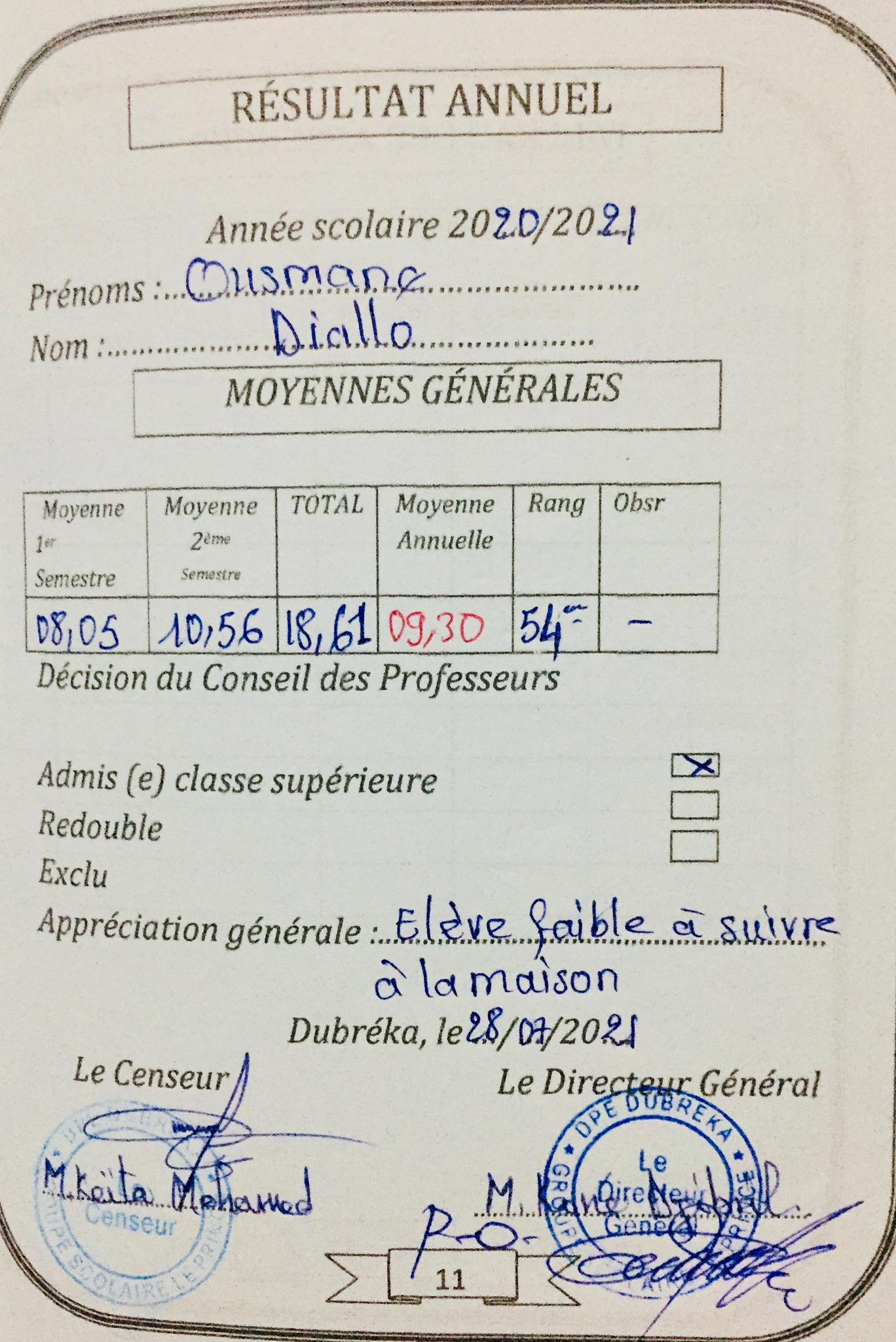 Ousmane Diallo byl adoptován v roce 2014 a dnes navštěvuje 7. třídu ve škole Thierno S.Sow.