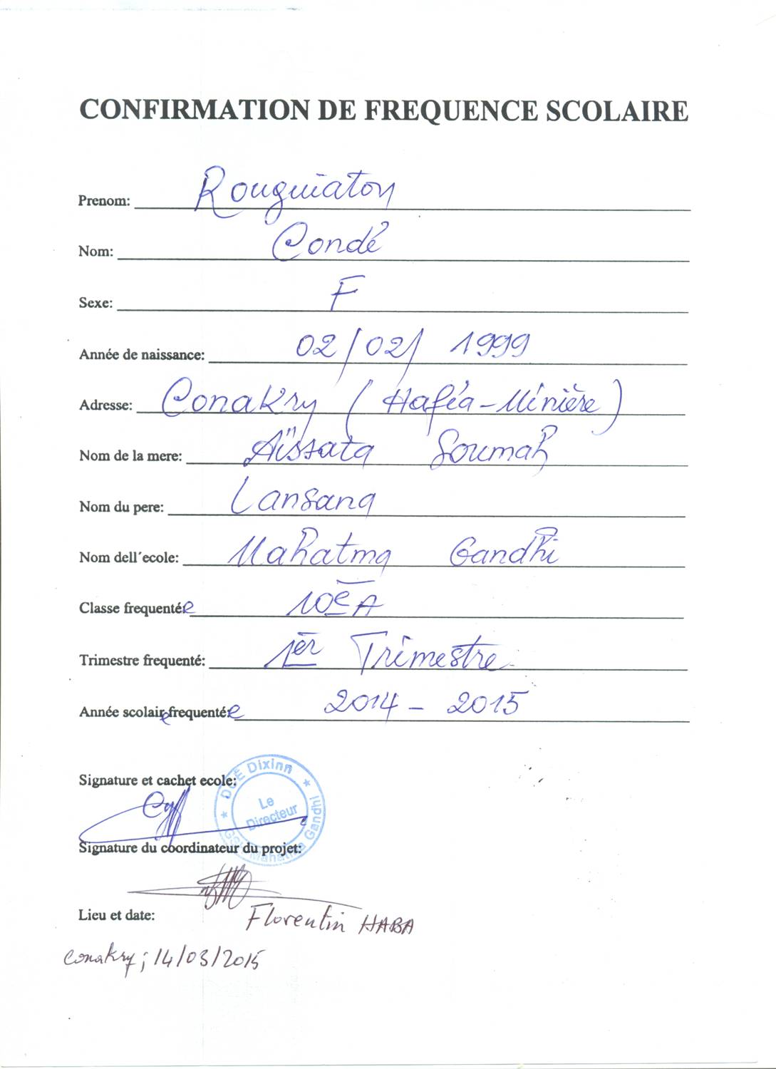 Aby mohlo adoptované dítko začít chodit do školy, musí být uhrazeny peníze za školné alespoň měsíc předem. Tím máme dostatek času zajistit převod peněz do Guineje a vyřídit všechny formality. Konkrétně to tedy znamená, že vždy do konce srpna, listopadu a února musí být na našem účtu 2500 Kč na uhrazení školného na nově začínající trimestr. Adoptivní rodič může platit třikrát ročně nebo jednorázově na celý rok a záleží to čistě na jeho rozhodnutí a možnostech.