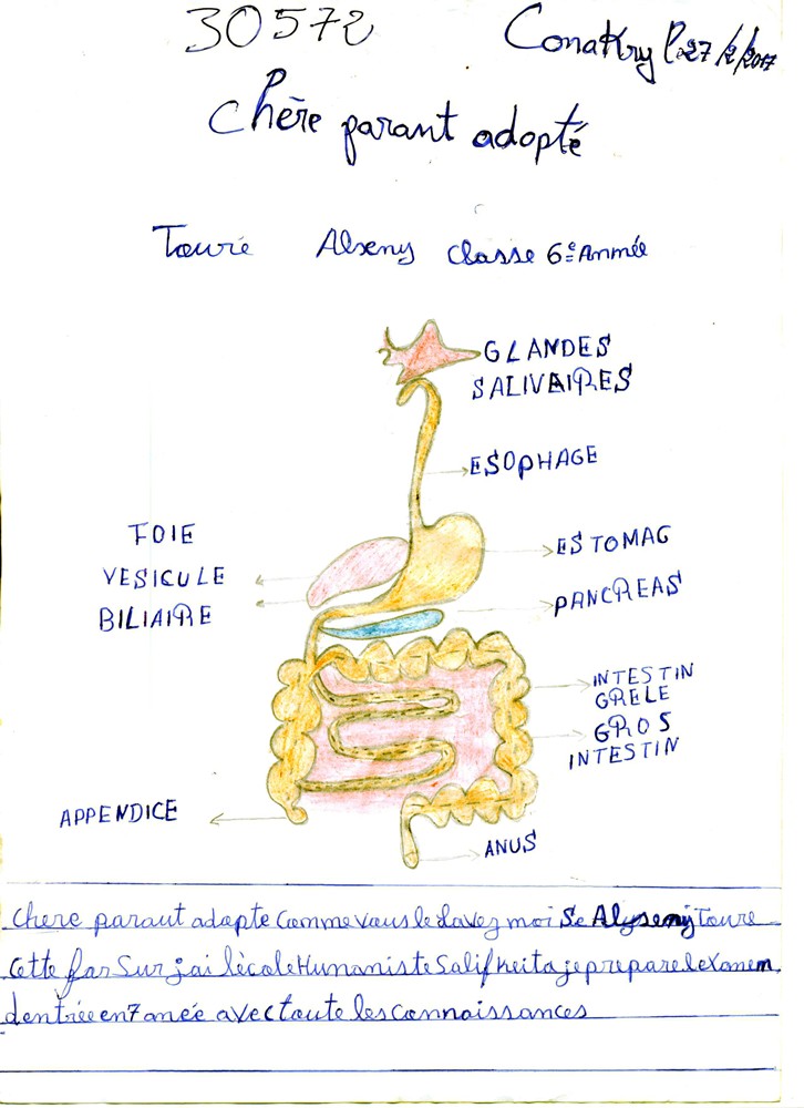 Fodé Laye díky svému prvnímu adoptivnímu rodiči začal chodit do školy. Naučil se číst, psát, počítat. Od roku 2016 se podpoře jeho školného věnuje nový "rodič", chlapec tedy může chodit dále do školy.