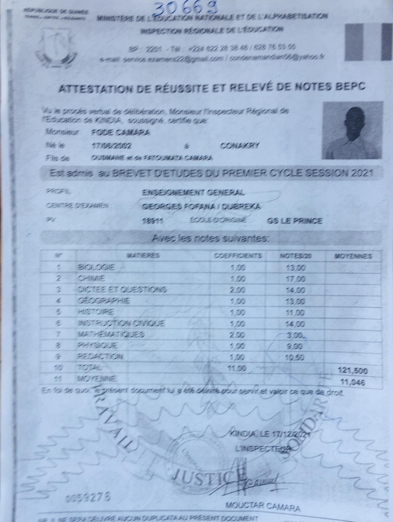 Otec: Ousmane Camara, nar. 1976, řidič