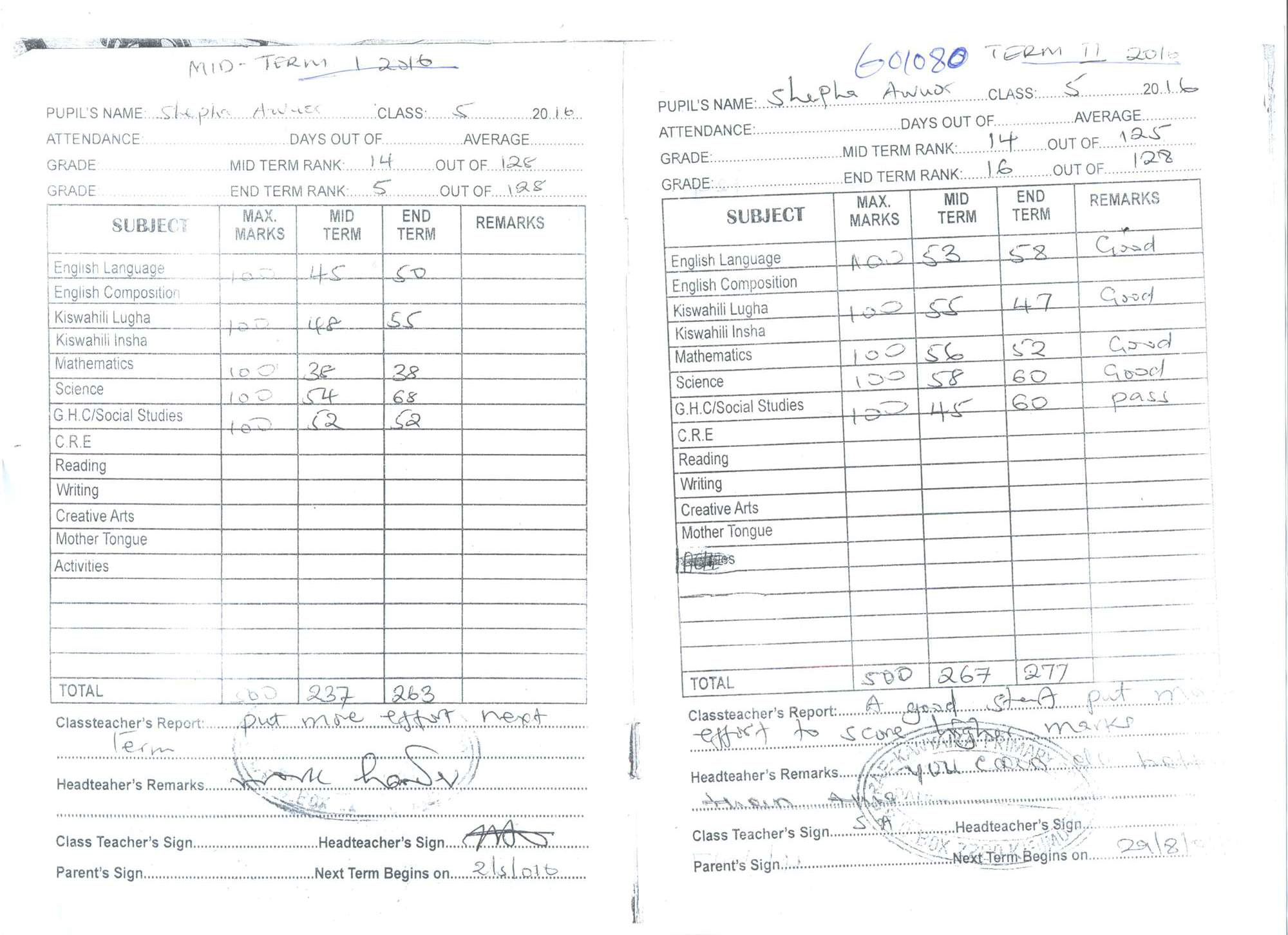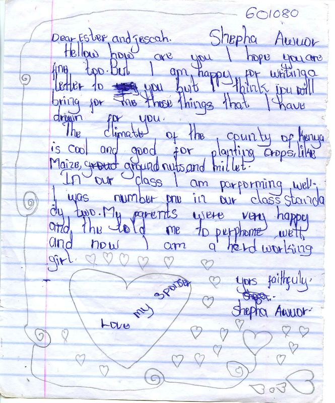 Shefa Awuor Obara byla adoptována v roce 2008 a dnes navštěvuje 1. ročník střední školy ve škole Peace Kids Humanist School.